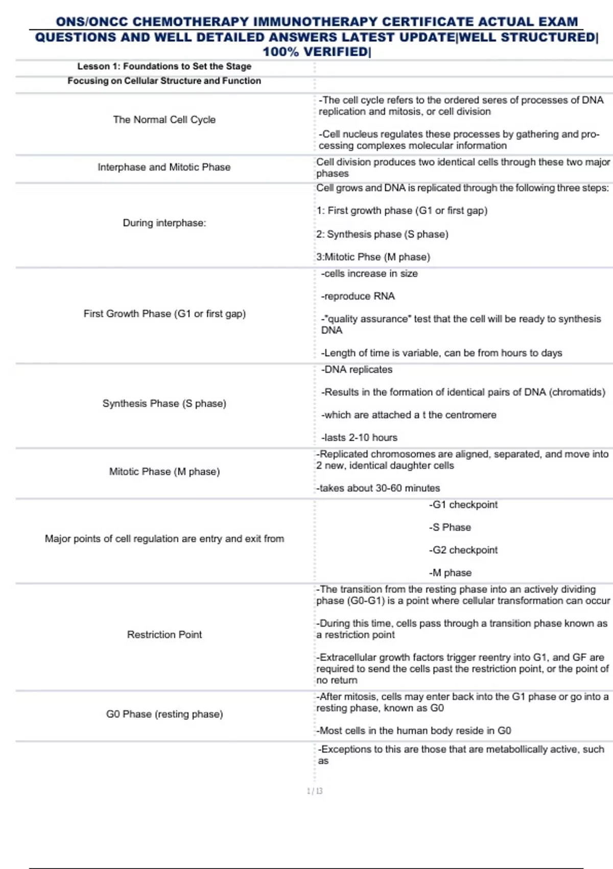 ONS/ONCC CHEMOTHERAPY IMMUNOTHERAPY CERTIFICATE ACTUAL EXAM QUESTIONS AND WELL-DETAILED ANSWERS LATEST UPDATE |WELL STRUCTURED| 100%VERIFIED|