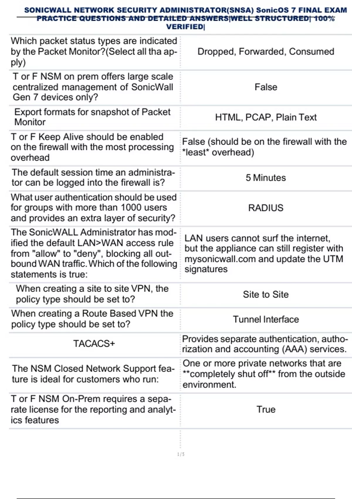 , SONICWALL NETWORK SECURITY ADMINISTRATOR(SNSA) SonicOS 7 FINAL EXAM