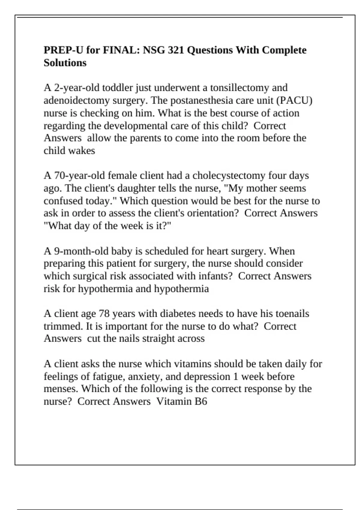 PREP-U for FINAL: NSG 321 Questions With Complete Solutions