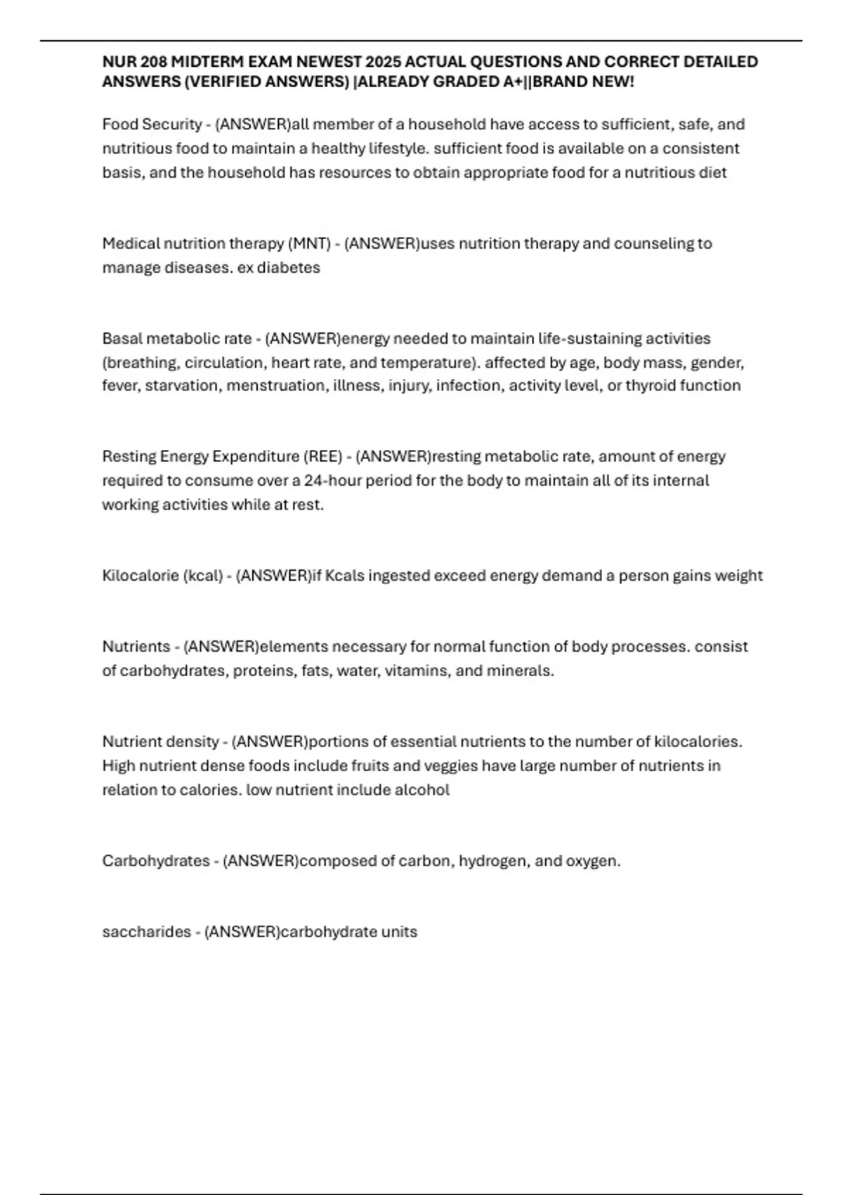 NUR 208 MIDTERM EXAM NEWEST 2025 ACTUAL QUESTIONS AND CORRECT DETAILED ANSWERS (VERIFIED ANSWERS) |ALREADY GRADED A+||BRAND NEW
