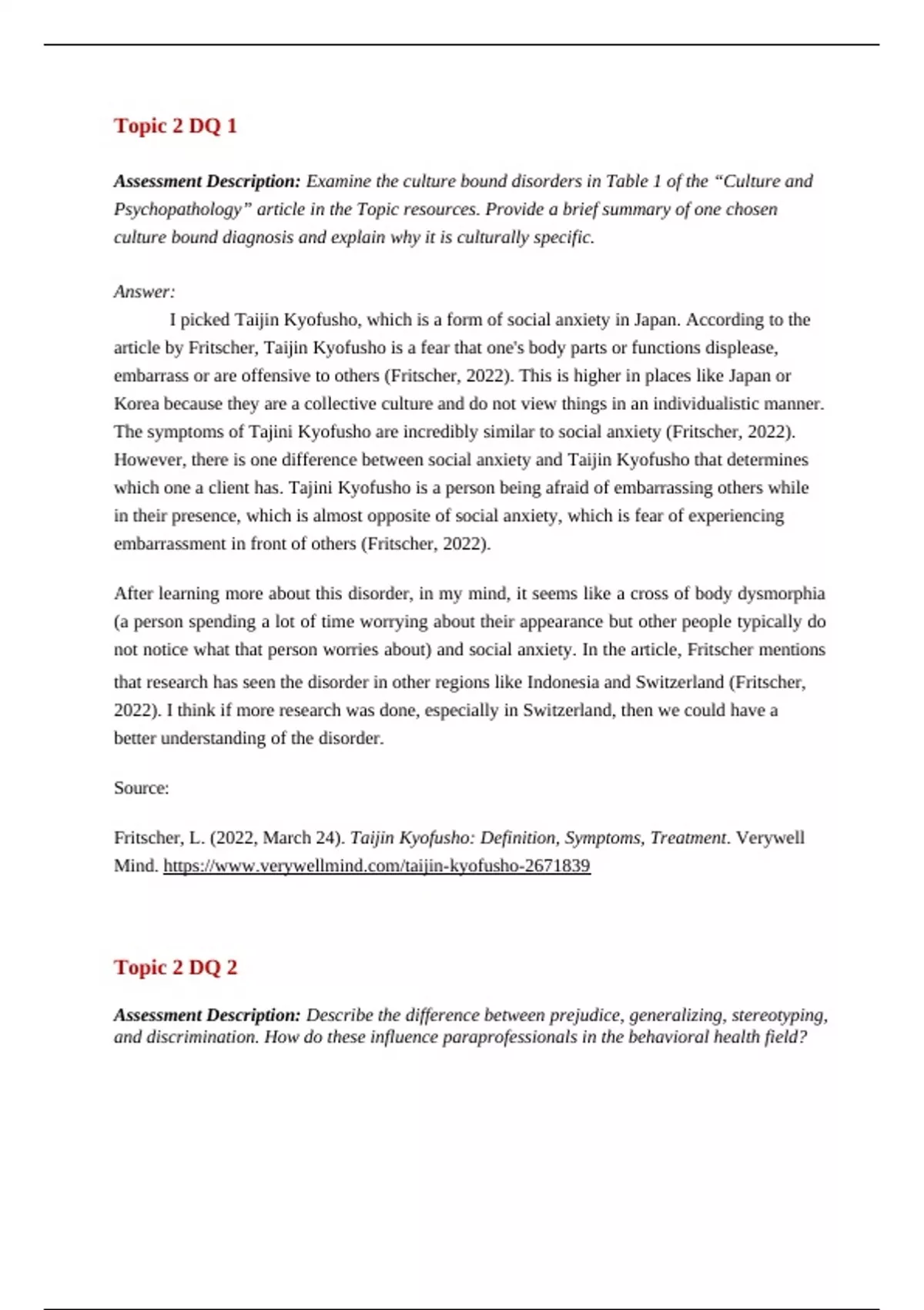 Assessment Description: Examine the culture bound disorders in Table 1 of the “Culture and