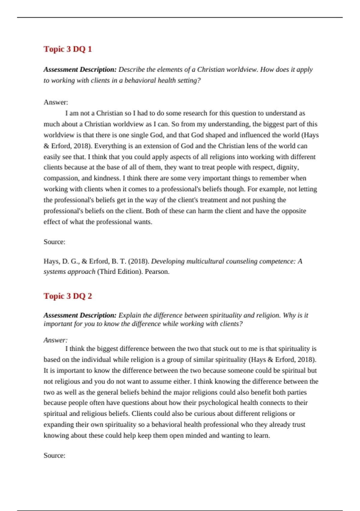 based on the individual while religion is a group of similar spirituality (Hays & Erford, 2018).