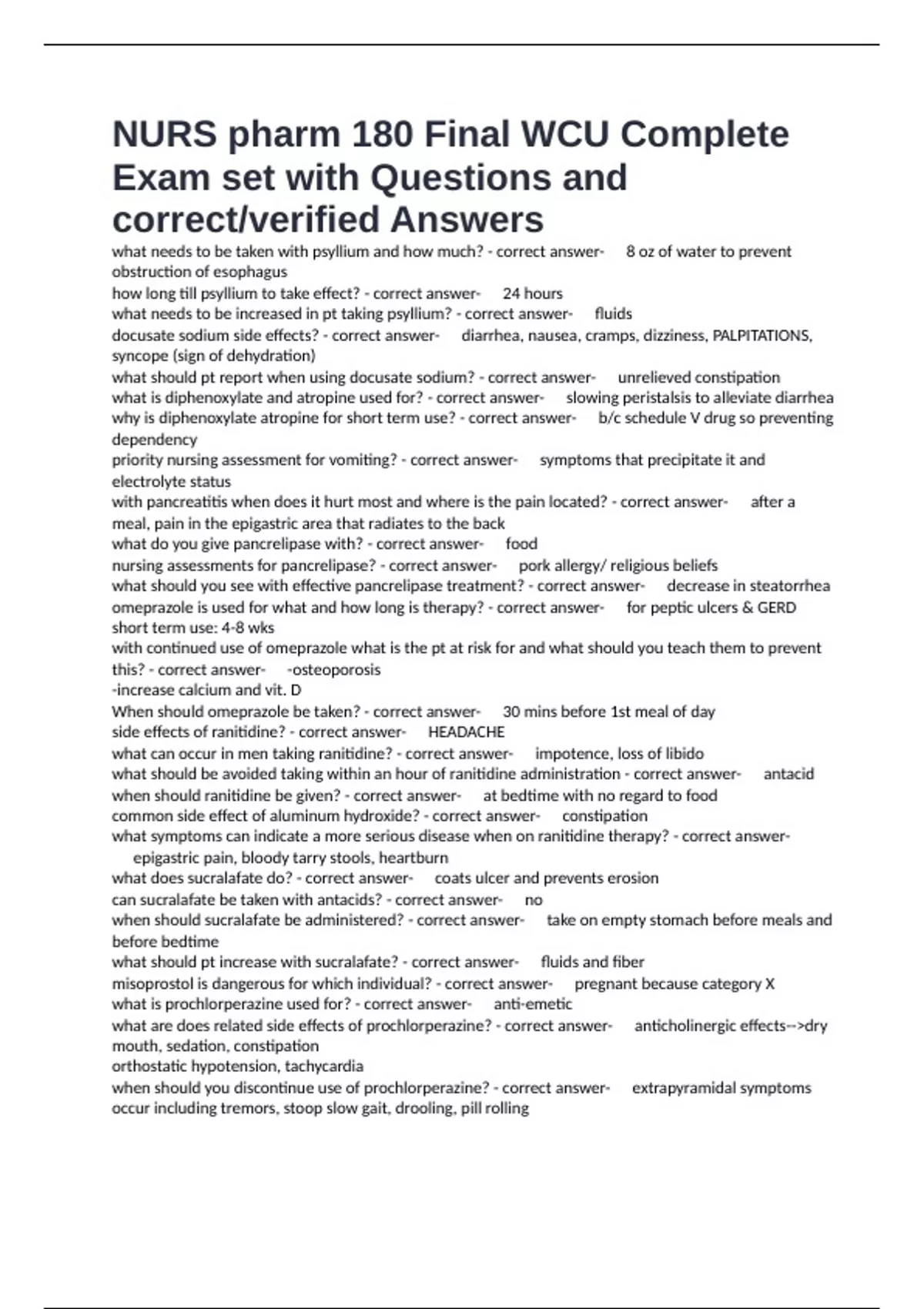 when should ranitidine be given? - correct answer-✅at bedtime with no regard to food