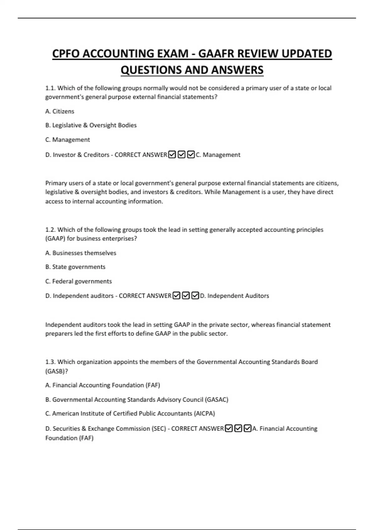 D. Independent auditors - CORRECT ANSWER✅✅✅D. Independent Auditors