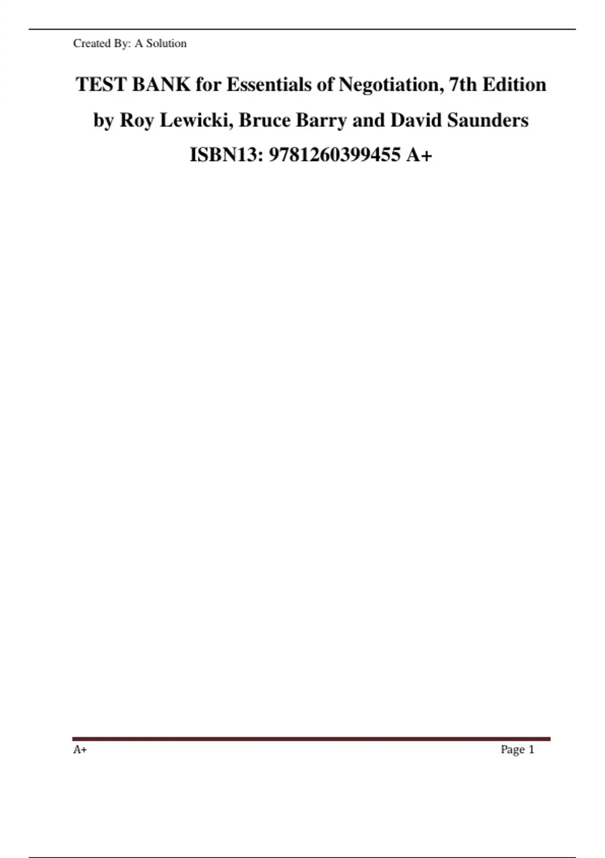 TEST BANK for Essentials of Negotiation, 7th Edition