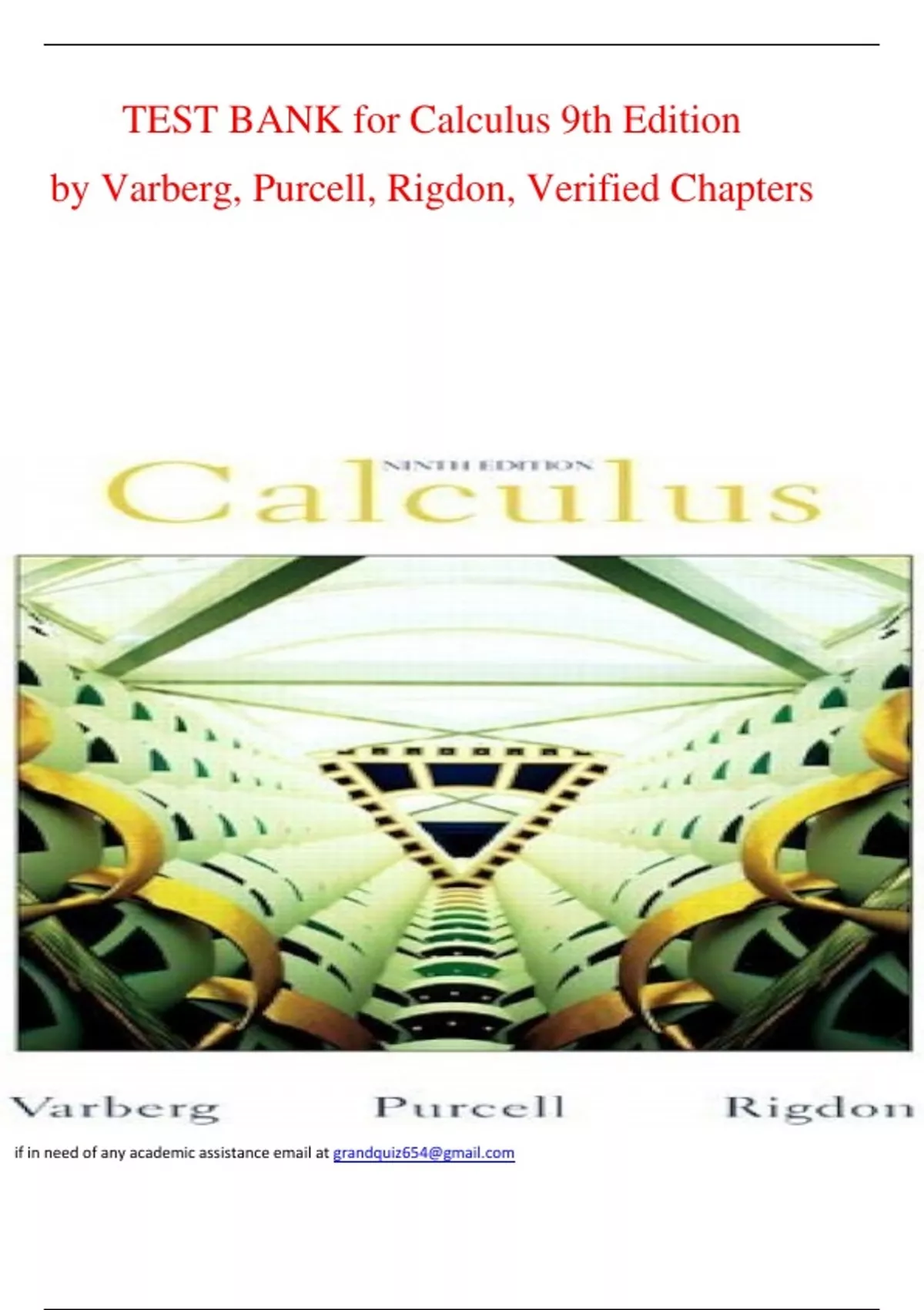 TEST BANK for Calculus 9th Edition by Varberg, Purcell, Rigdon, Verified Chapters TEST BANK for Calculus 9th Edition by Varberg, Purcell, Rigdon, Verified Chapters TEST BANK for Calculus 9th Edition by Varberg, Purcell, Rigdon, Verified Chapters TEST BANK for Calculus 9th Edition by Varberg, Purcell, Rigdon, Verified Chapters