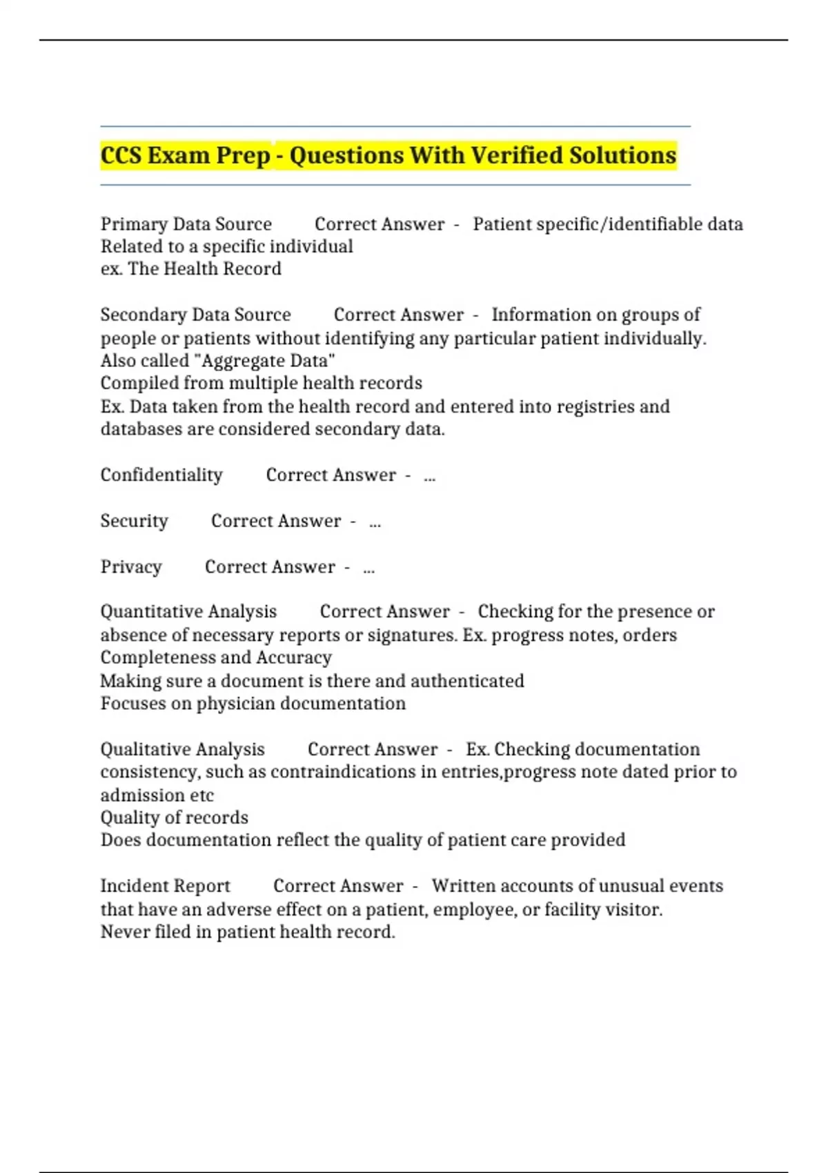 Primary Data Source Correct Answer - Patient specific/identifiable data