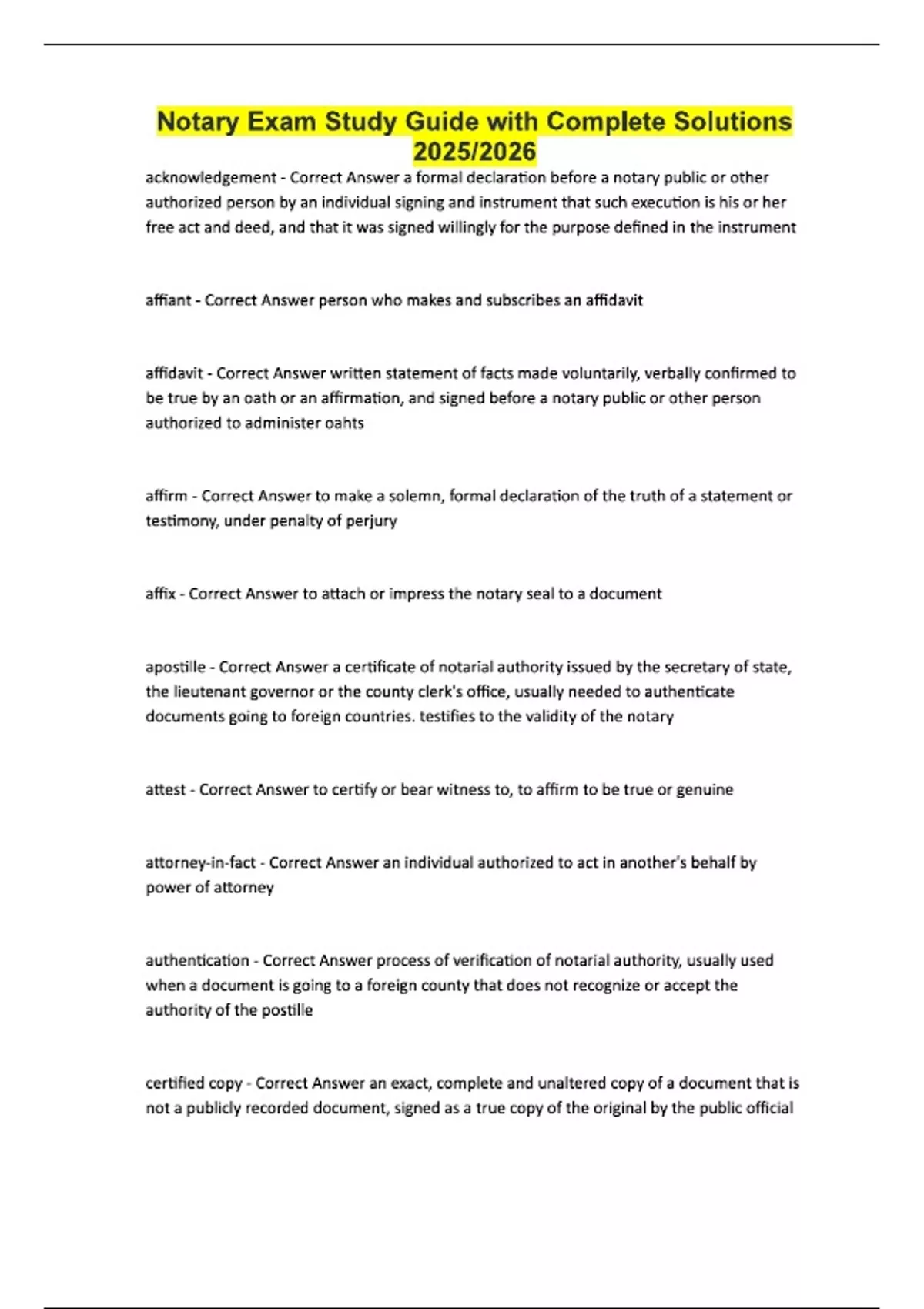 Notary Exam Study Guide with Complete Solutions 2025/2026