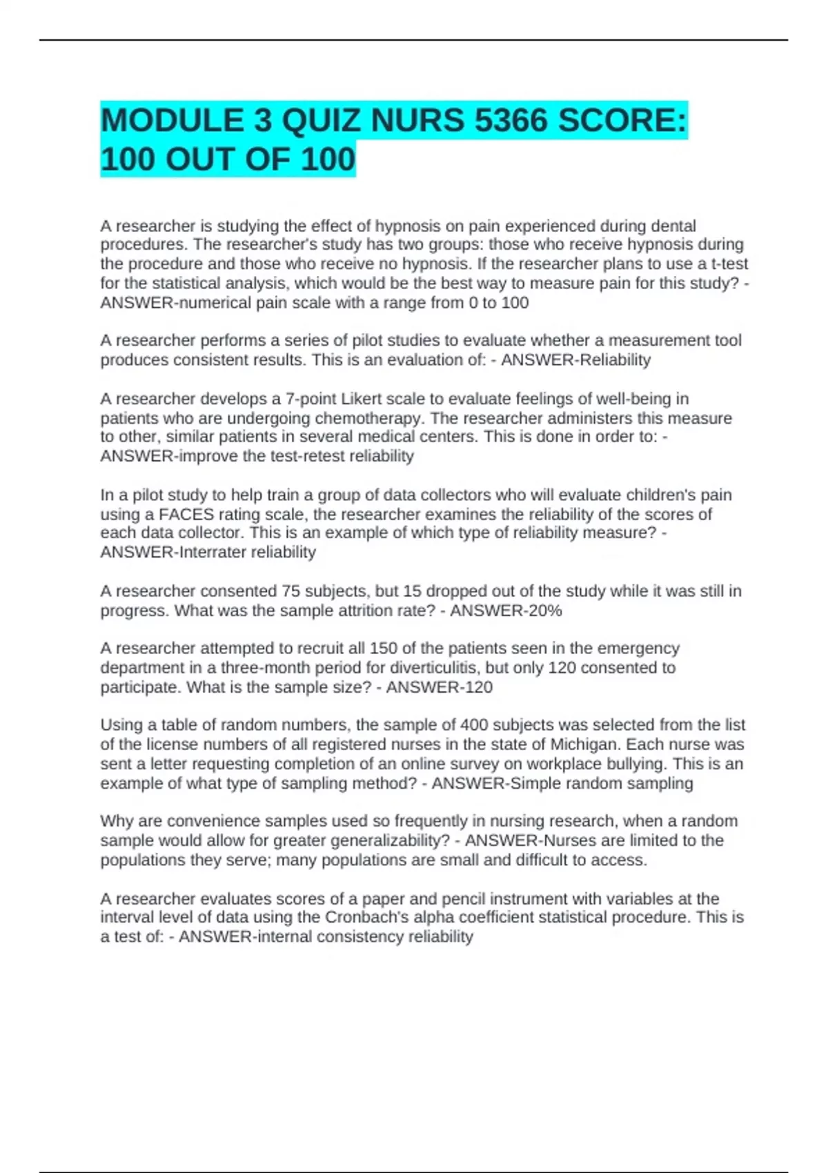 a test of: - ANSWER-internal consistency reliability