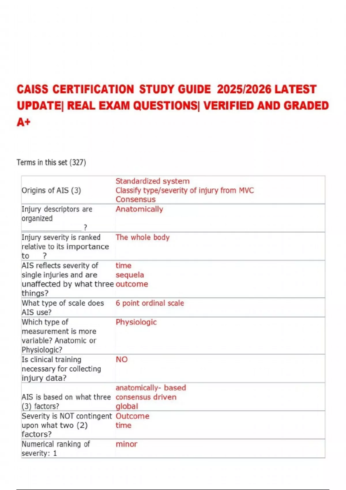 CAISS CERTIFICATION STUDY GUIDE 2025/2026 LATEST UPDATE| REAL EXAM QUESTIONS| VERIFIED AND GRADED A+