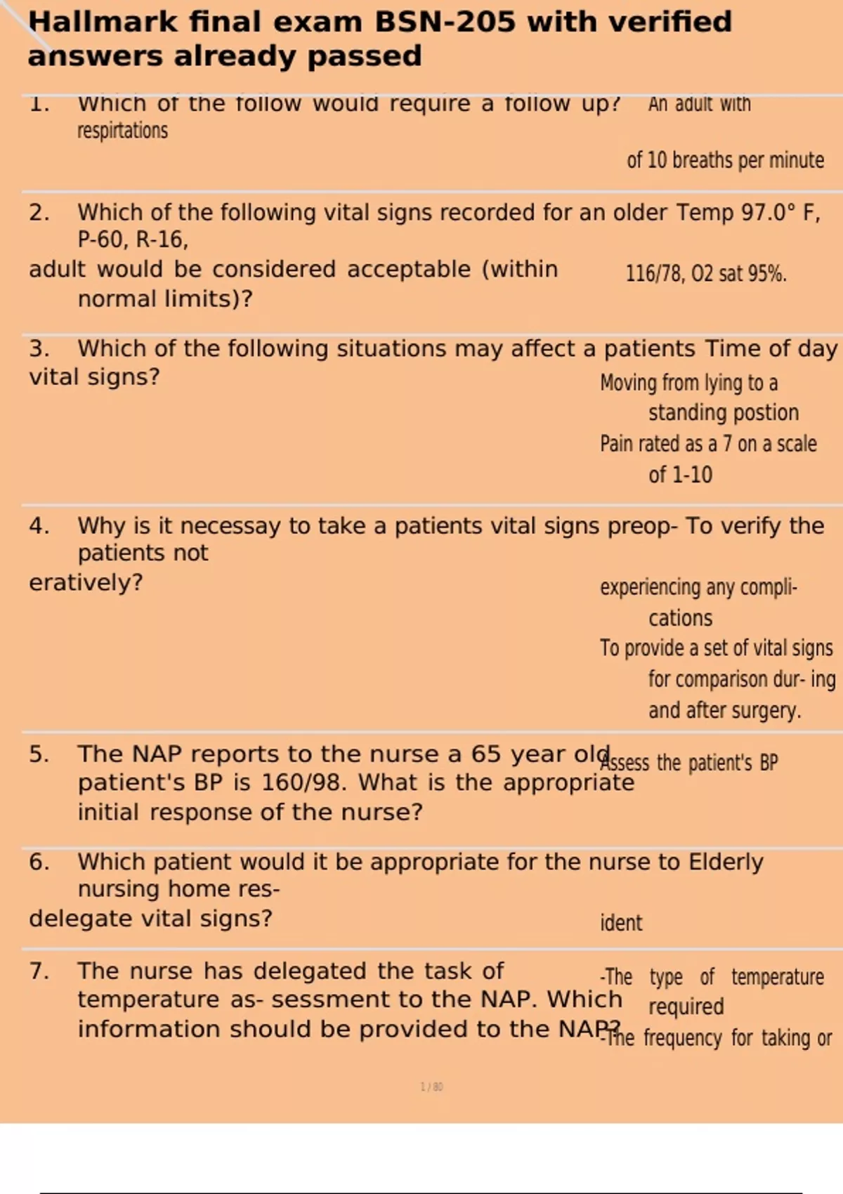 5. The NAP reports to the nurse a 65 year old Assess the patient's BP