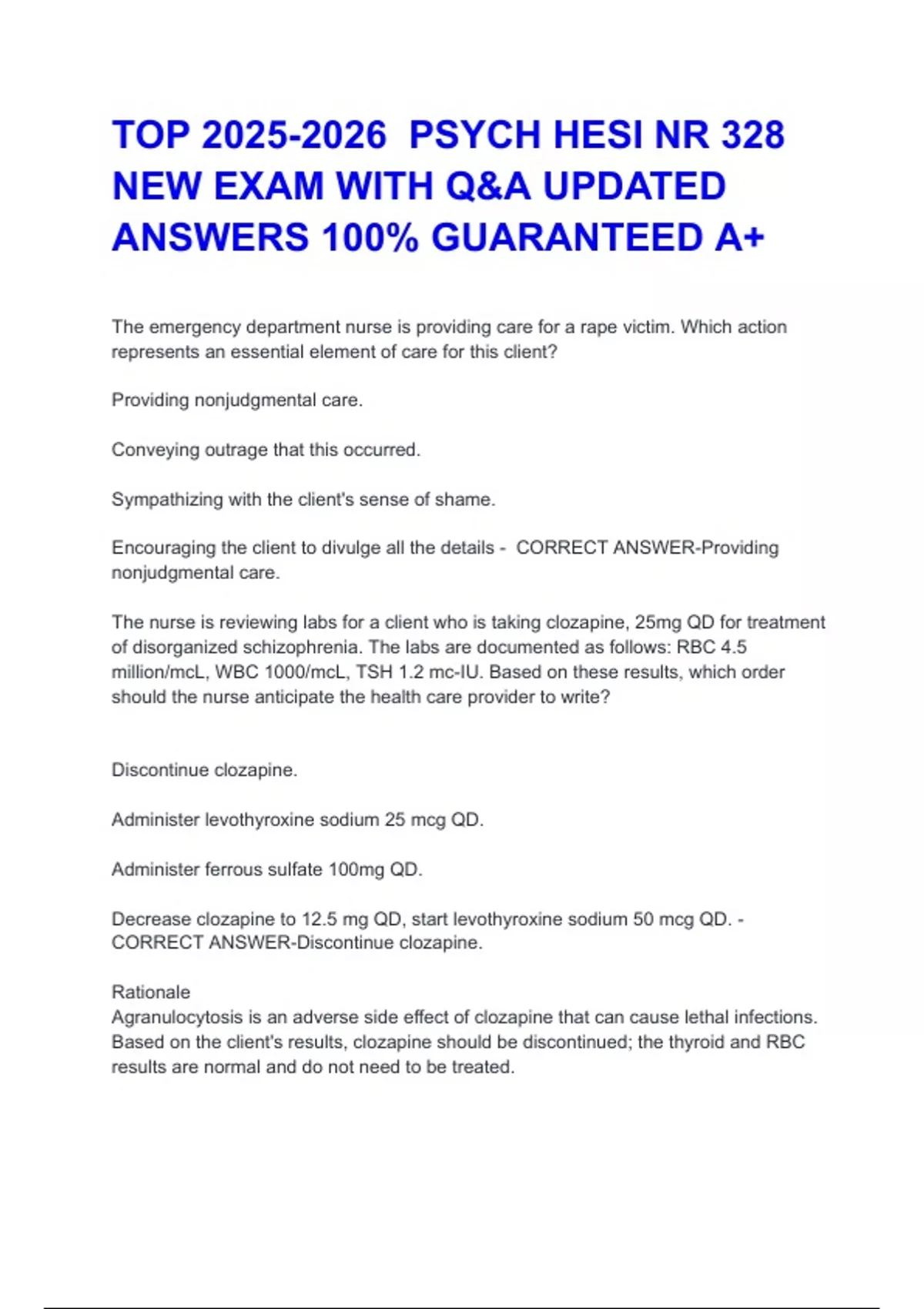 ‭CORRECT ANSWER-Discontinue clozapine.‬