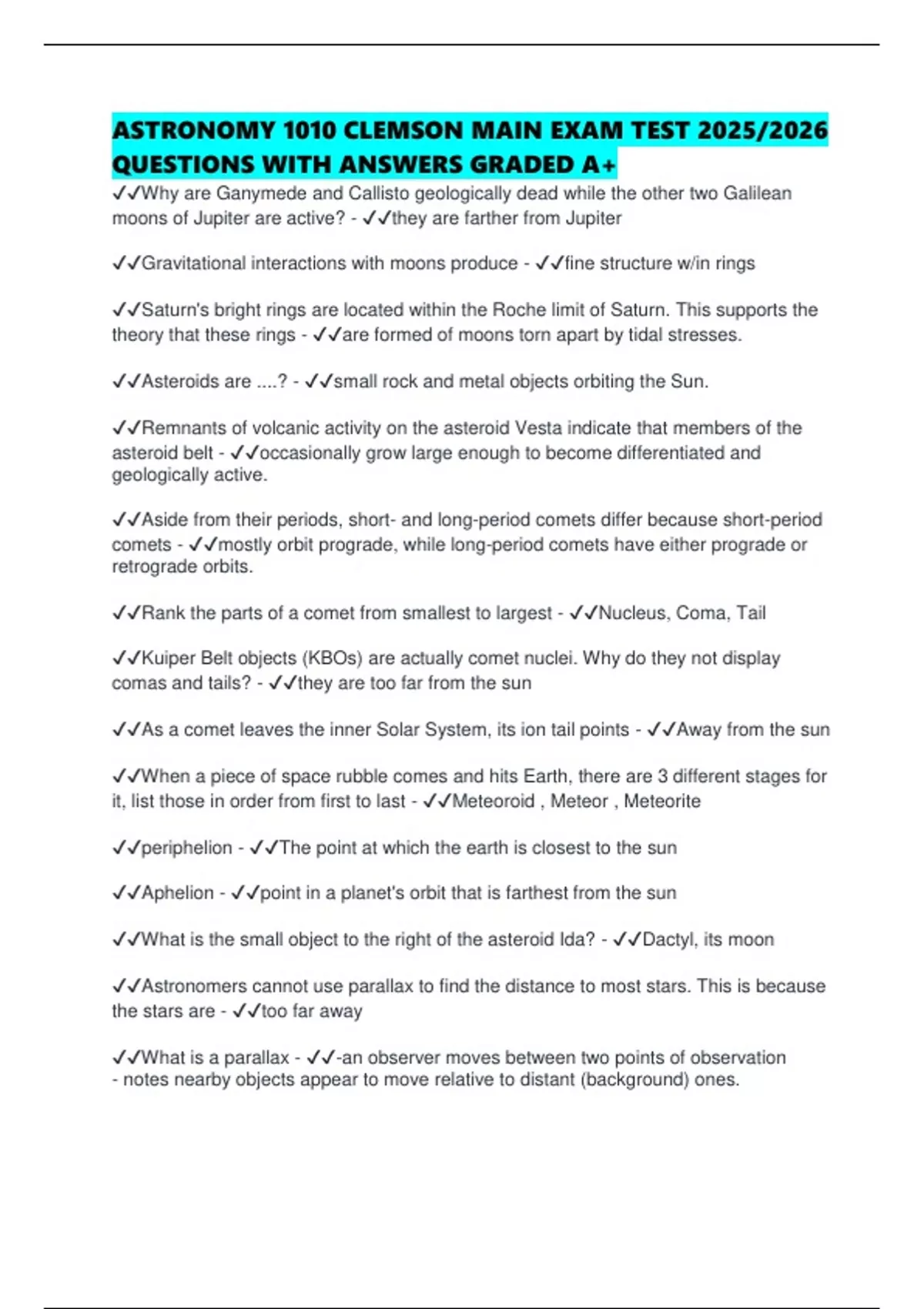 ASTRONOMY 1010 CLEMSON MAIN EXAM TEST 2025/2026 QUESTIONS WITH ANSWERS GRADED A+