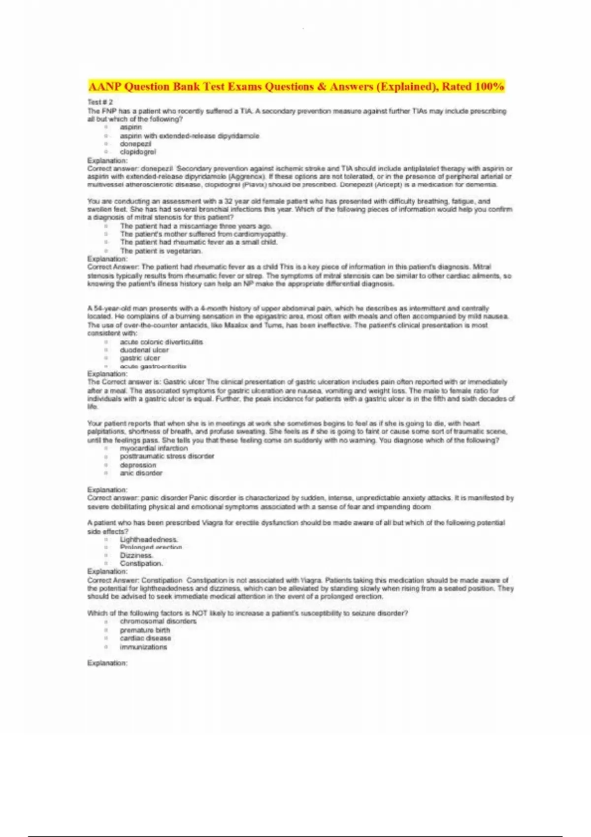 AANP Question Bank Test Exams Questions & Answers (Explained), Rated 100%