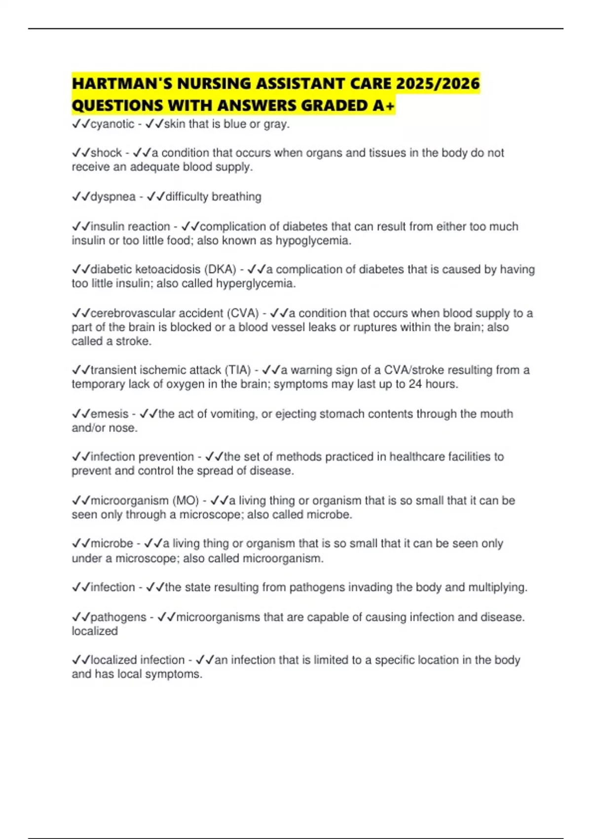 HARTMAN'S NURSING ASSISTANT CARE 2025/2026 QUESTIONS WITH ANSWERS GRADED A+