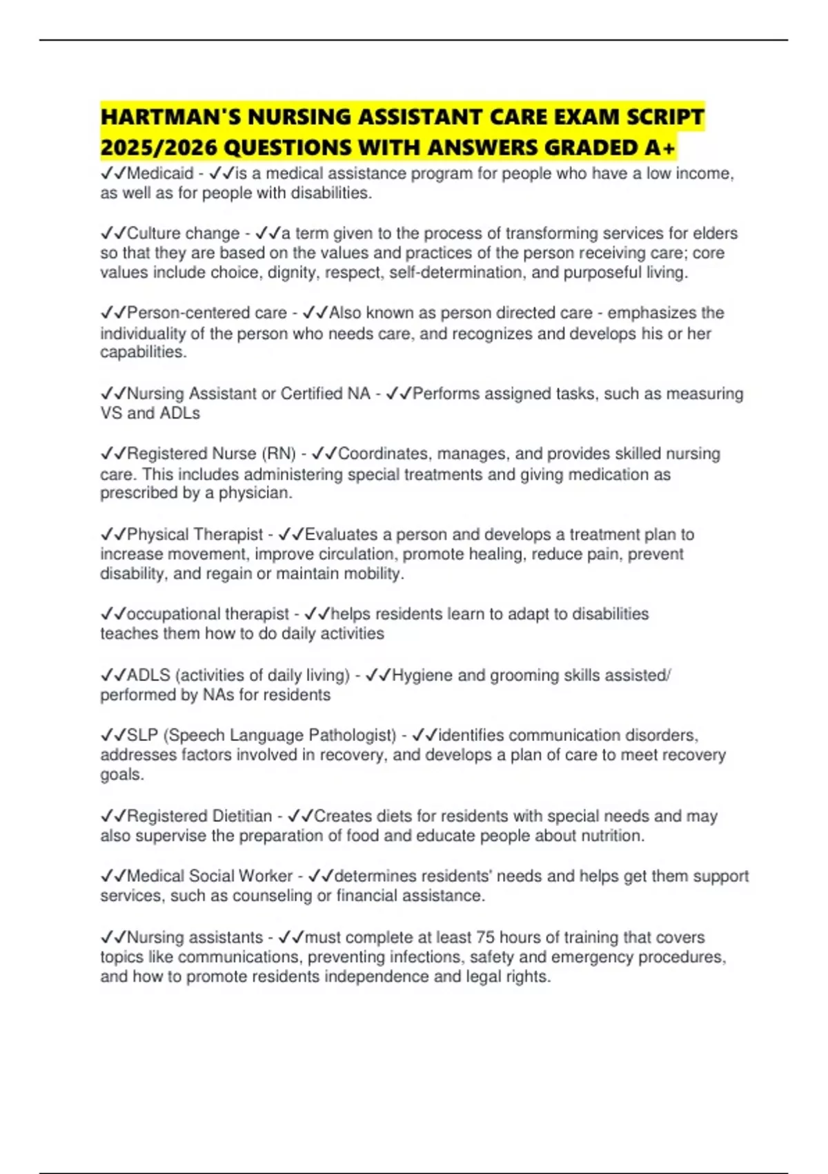 ✔✔Nursing Assistant or Certified NA - ✔✔Performs assigned tasks, such as measuring