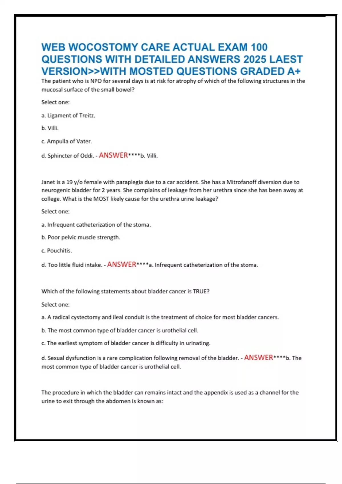 d. Ureterostomy. - ANSWER****b. Ileal conduit.