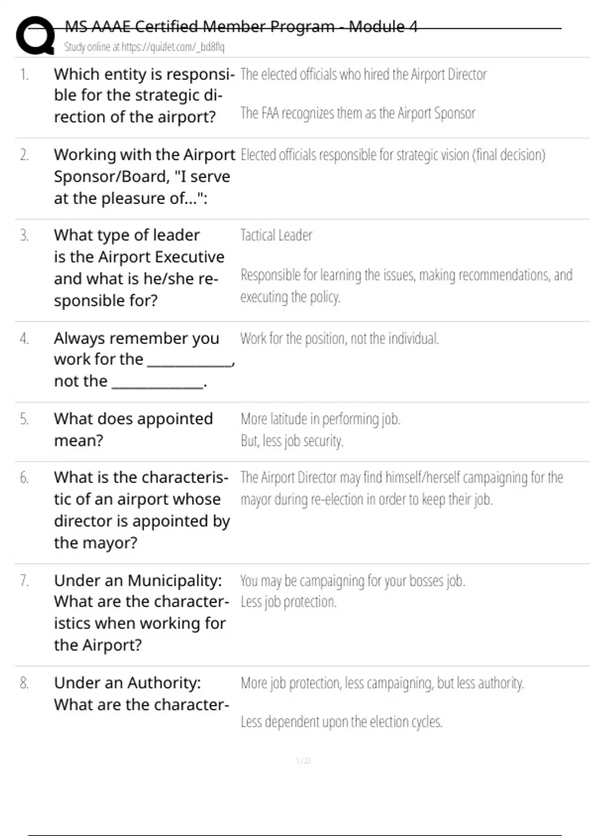 1. Which entity is responsi- The elected officials who hired the Airport Director