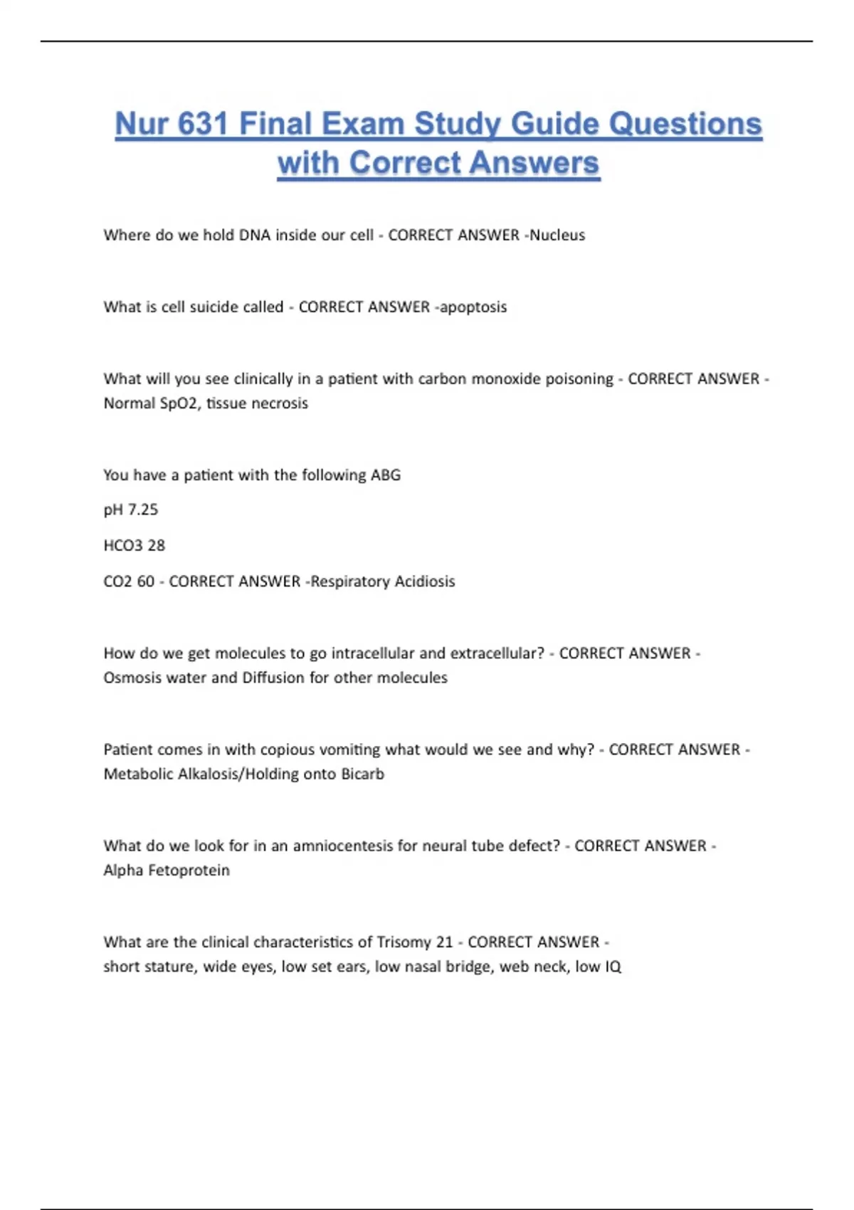 Nur 631 Final Exam Study Guide Questions with Correct Answers 2025/2026