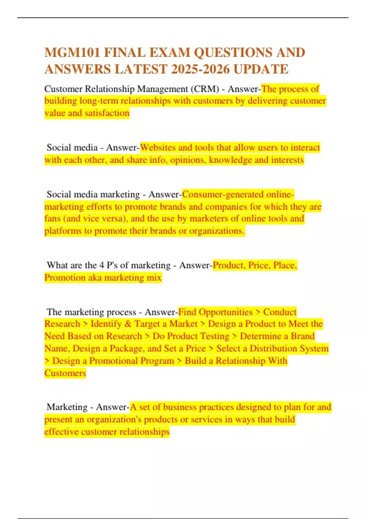 MGM101 FINAL EXAM QUESTIONS AND
