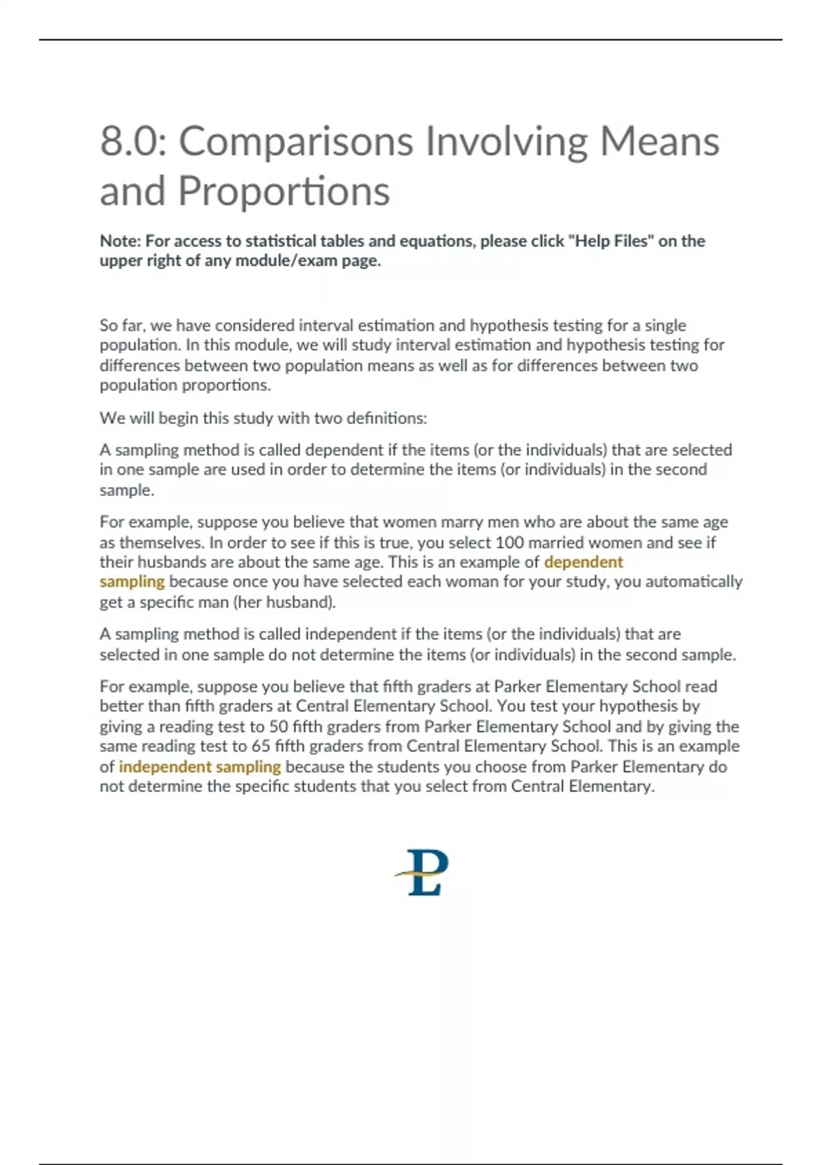 MATH 110 8.0: Comparisons Involving Means and Proportions
