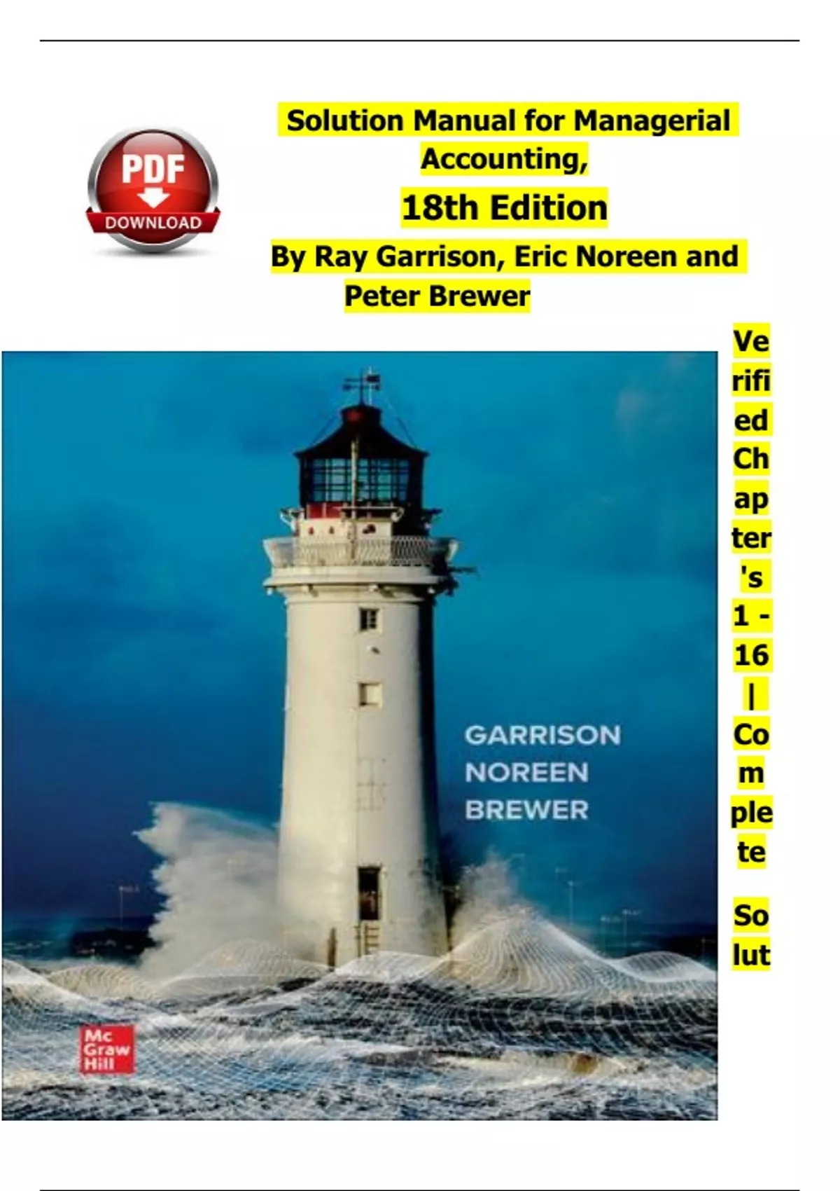 Solution Manual for Managerial Accounting, 18th Edition By Ray Garrison, Eric Noreen and Peter Brewer Verified Chapter's 1 - 16 | Complete
