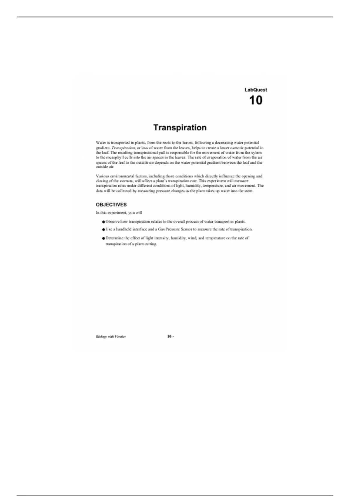 Biology with Vernier 10 -