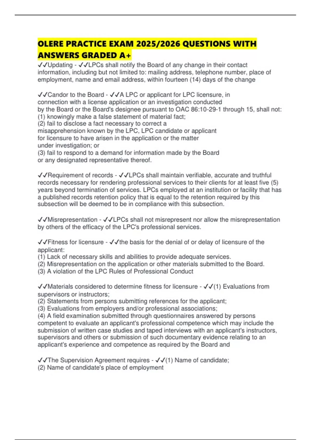 ✔✔Candor to the Board - ✔✔A LPC or applicant for LPC licensure, in