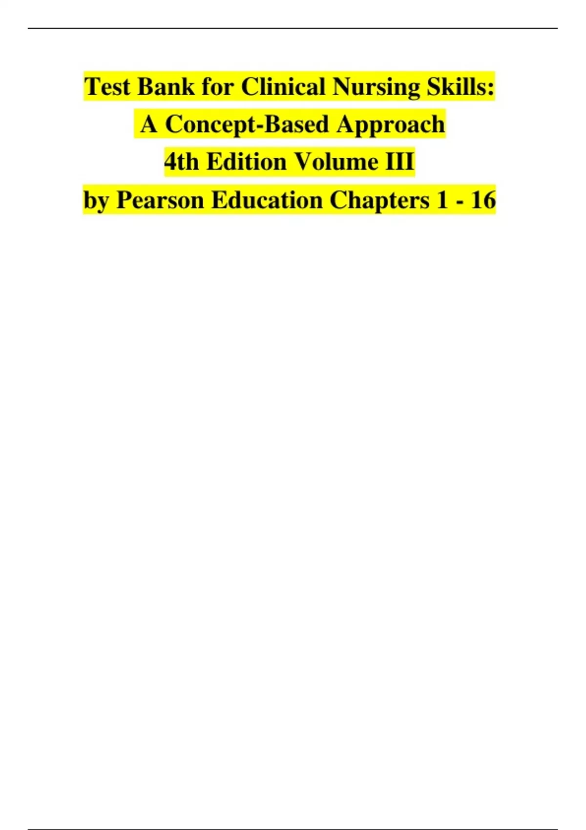 ,Test Bank for Clinical Nursing Skills: A Concept-Based Approach 4th Edition Pearson