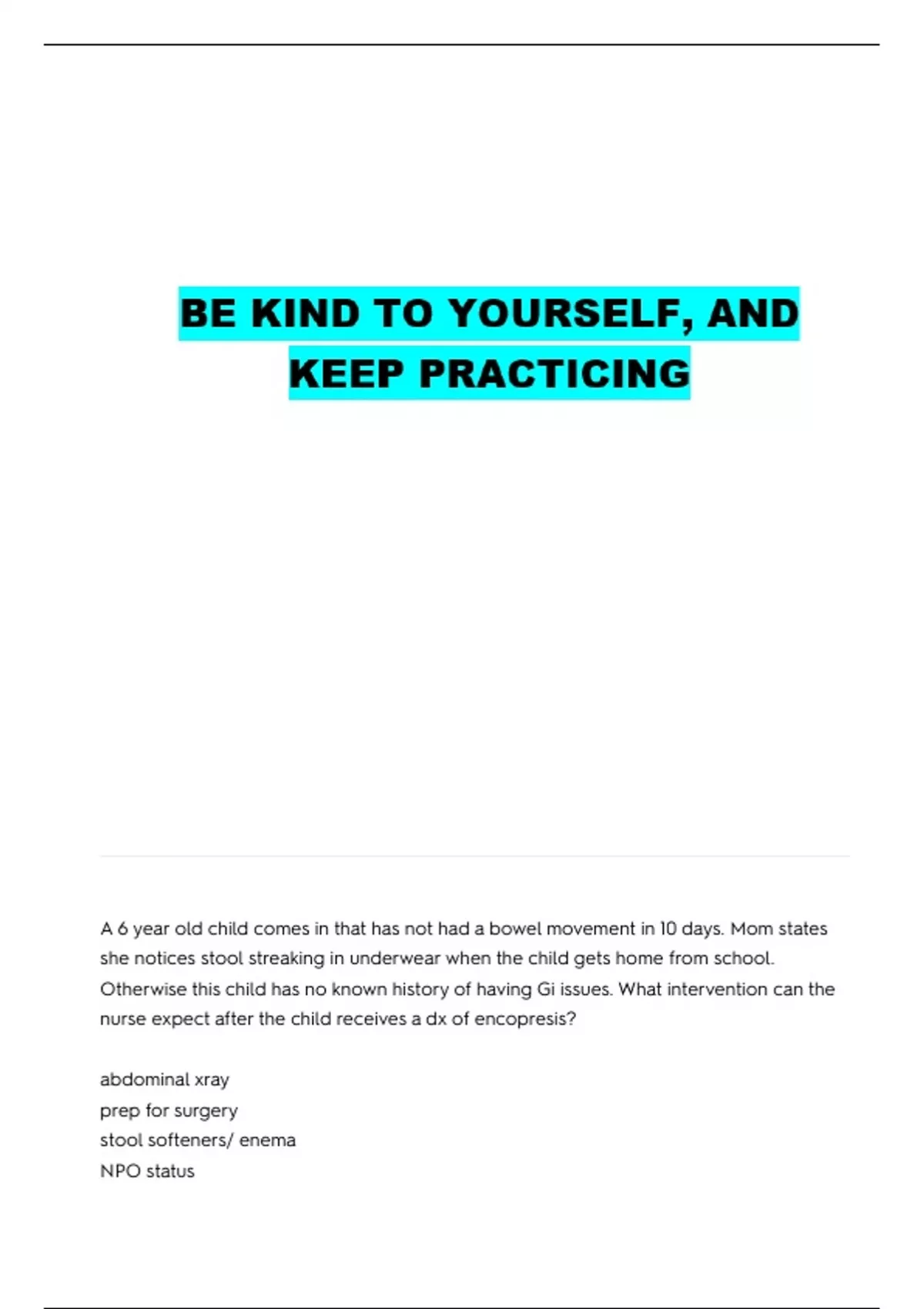 A 6 year old child comes in that has not had a bowel movement in 10 days. Mom states