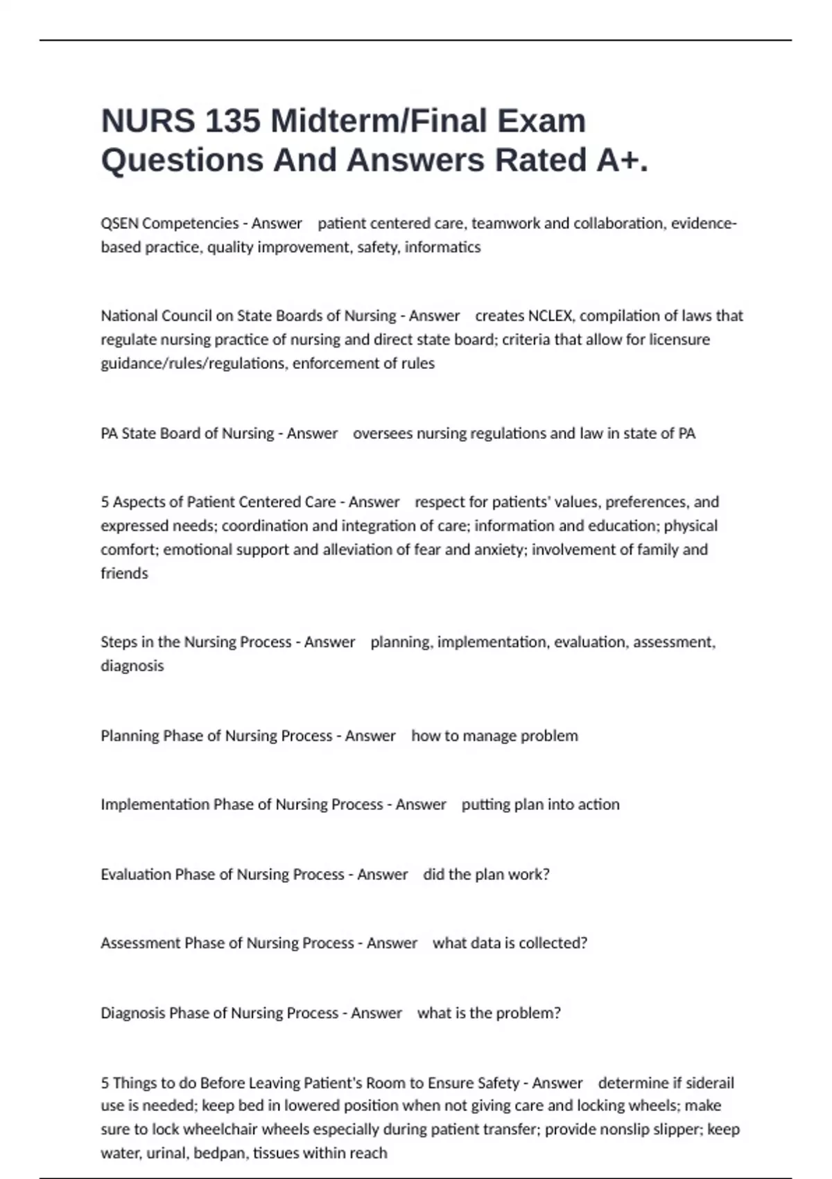 Steps in the Nursing Process - Answer planning, implementation, evaluation, assessment,