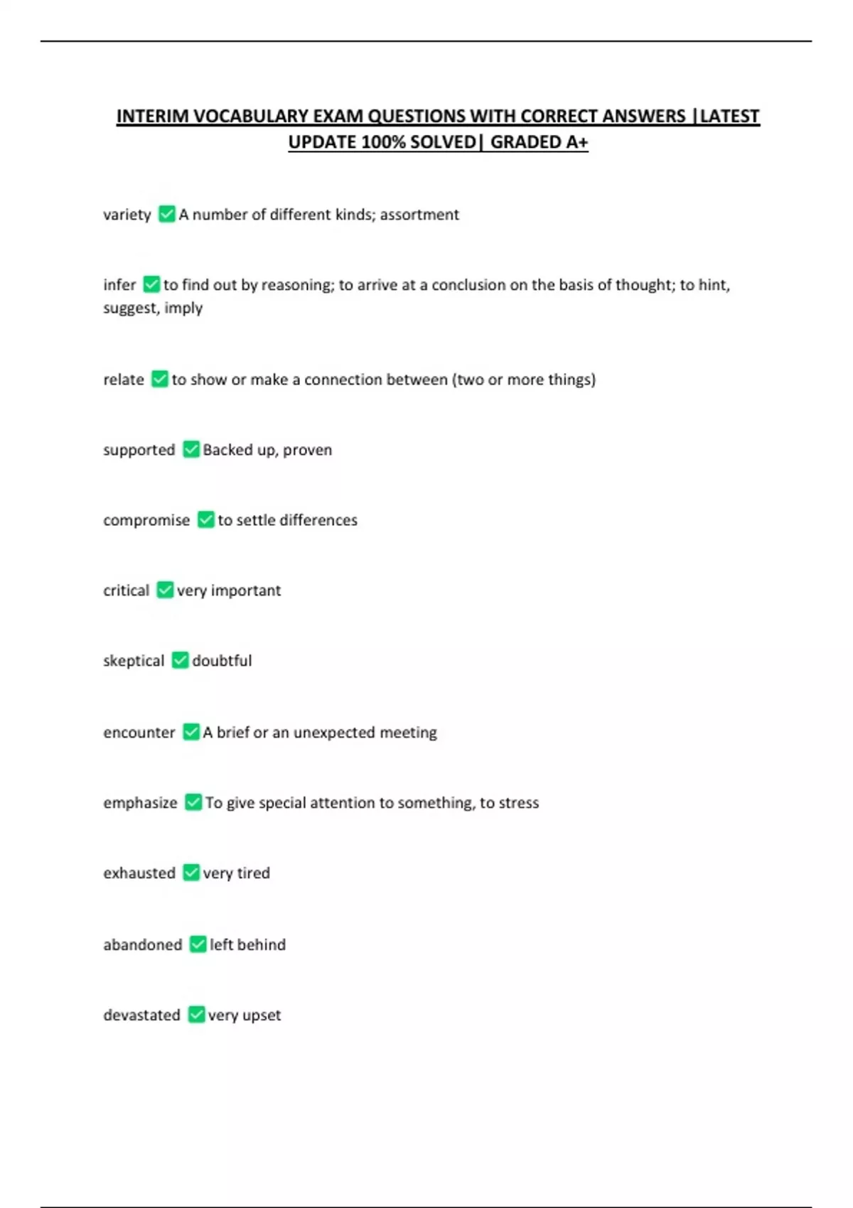 INTERIM VOCABULARY EXAM QUESTIONS WITH CORRECT ANSWERS |LATEST UPDATE 100% SOLVED| GRADED A+