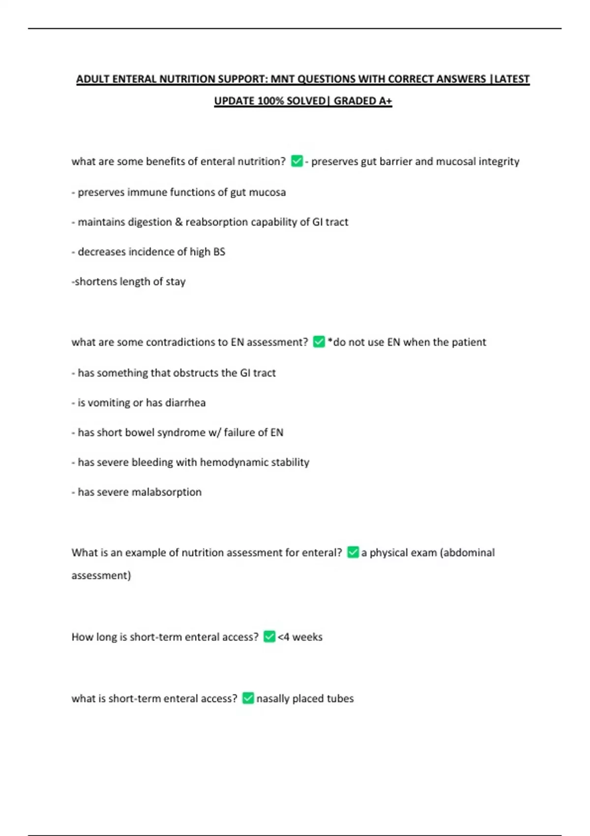 What is an example of nutrition assessment for enteral? a physical exam (abdominal