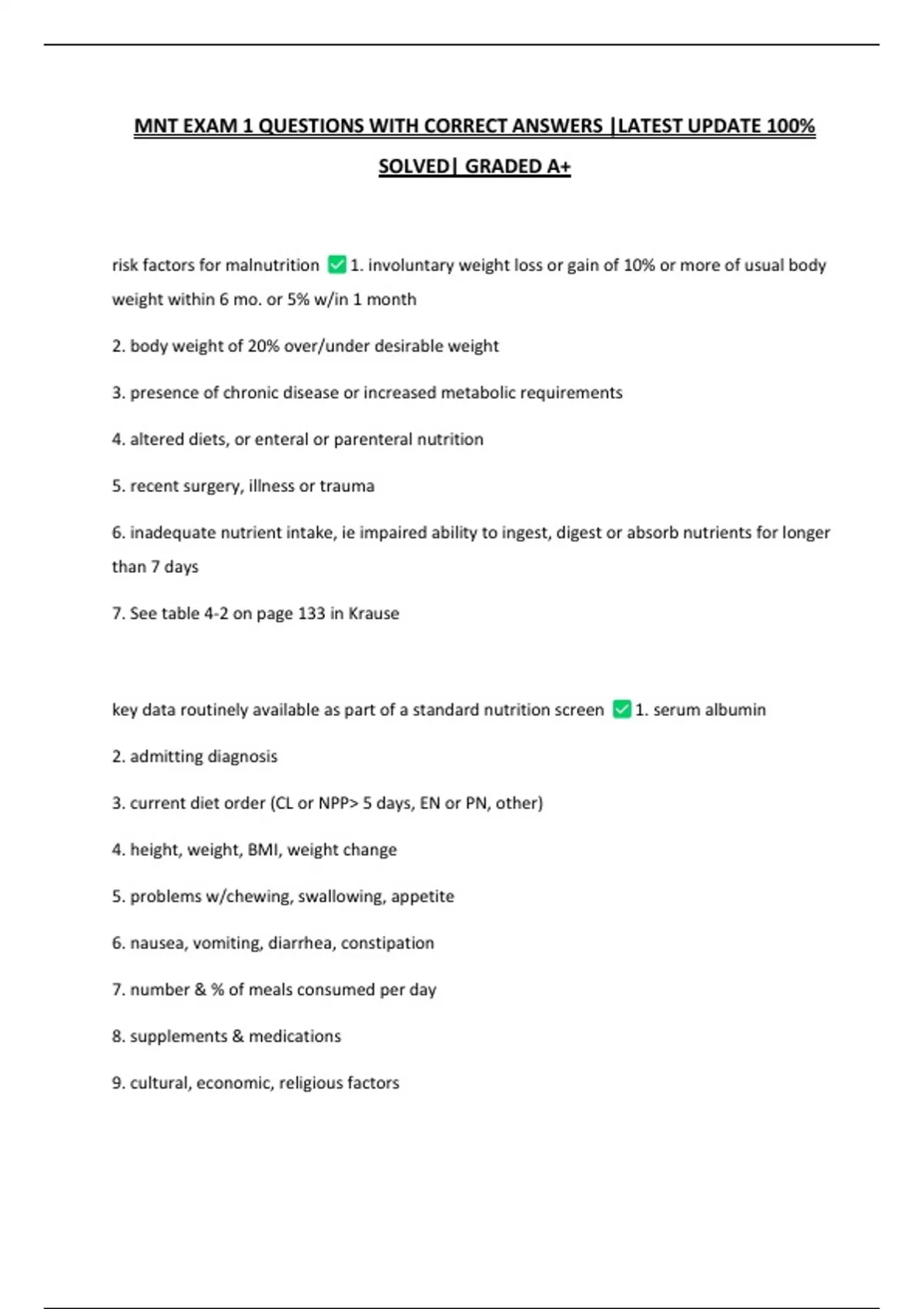 key data routinely available as part of a standard nutrition screen 1. serum albumin