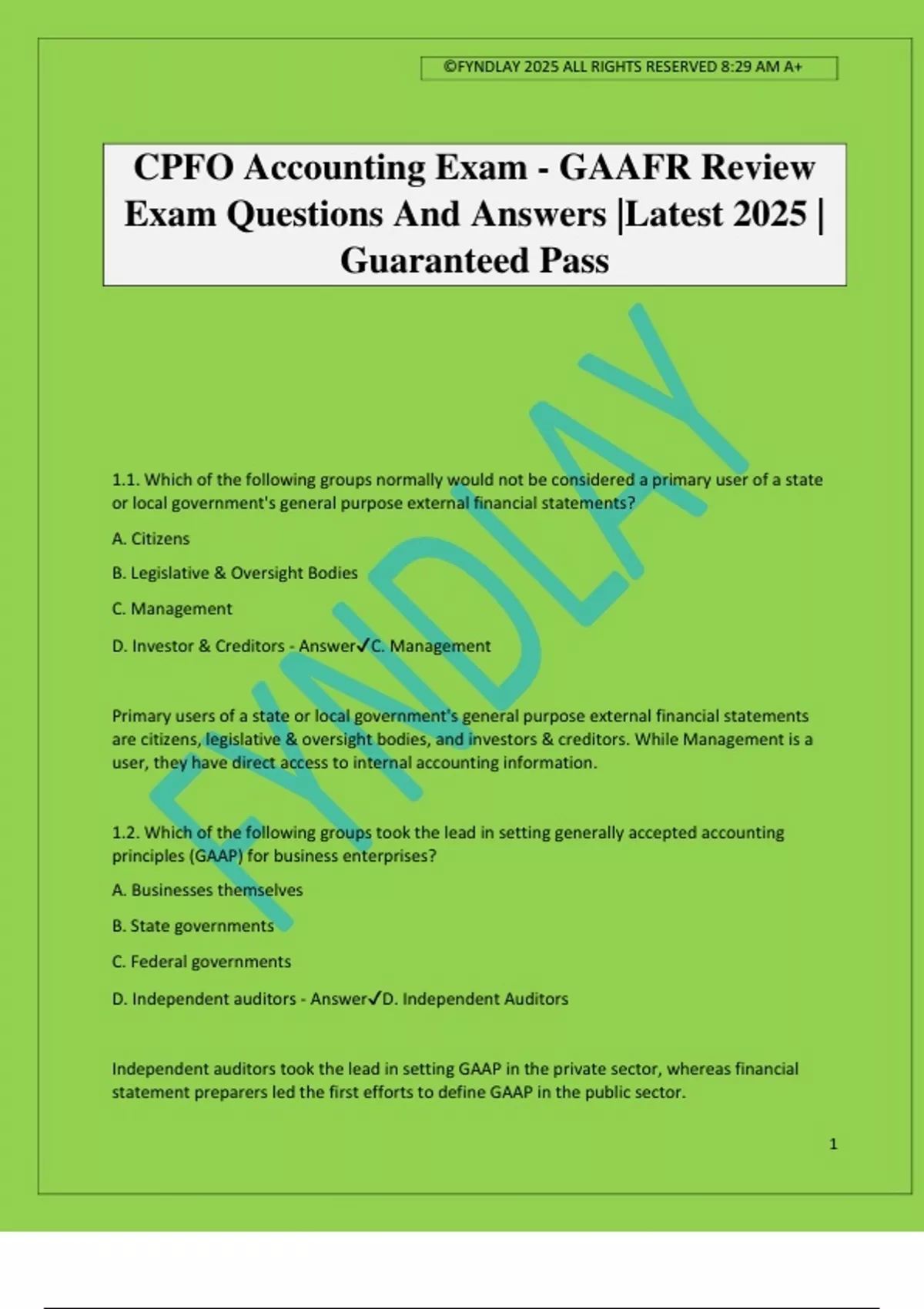 d. The AICPA's audit and accounting guide State and Local Governments - Answer✔C. GASB