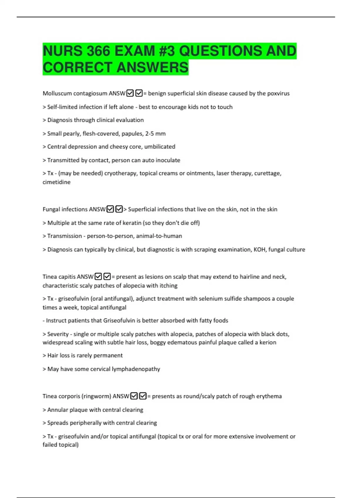 Fungal infections ANSW✅✅> Superficial infections that live on the skin, not in the skin