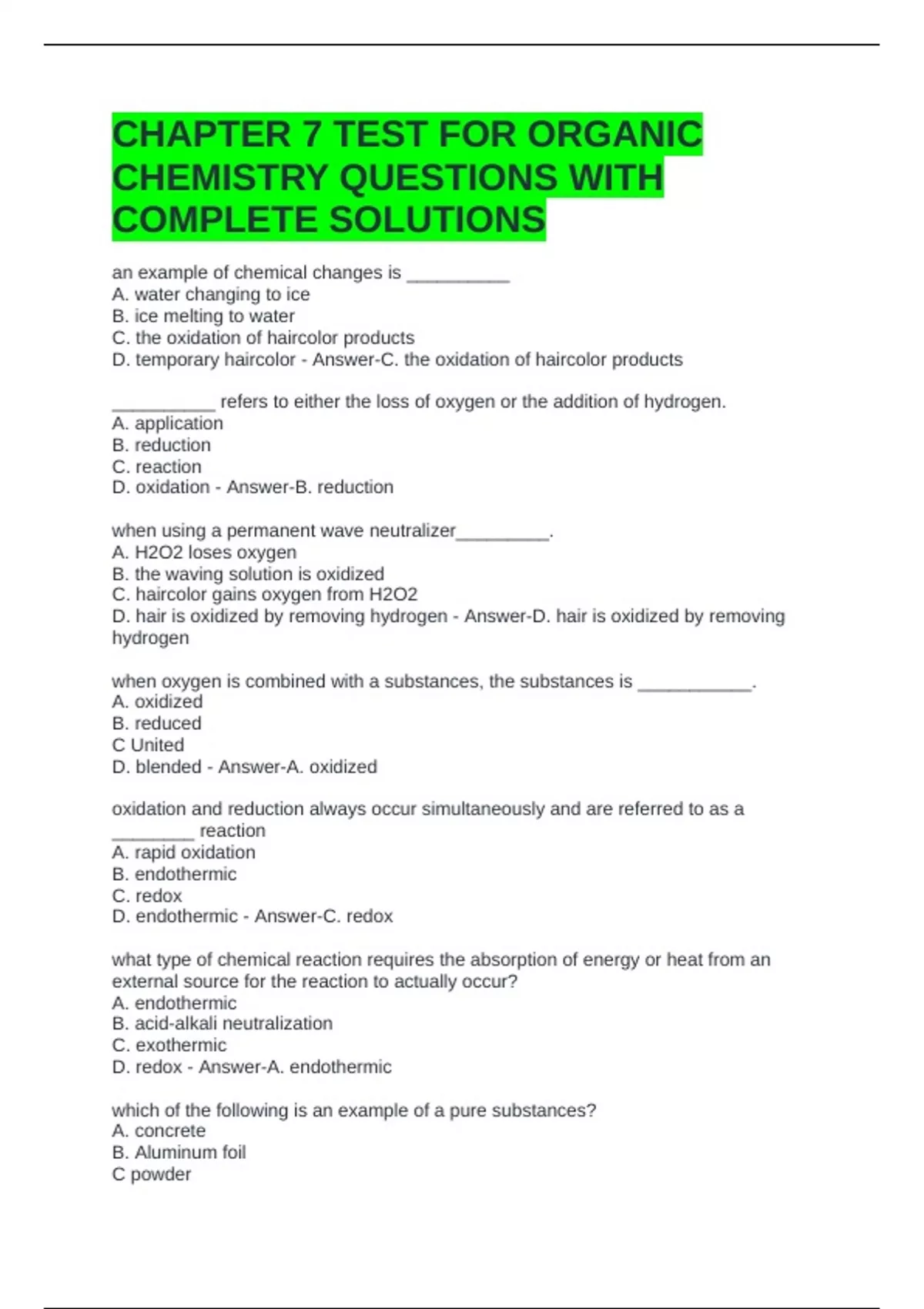 CHAPTER 7 TEST FOR ORGANIC