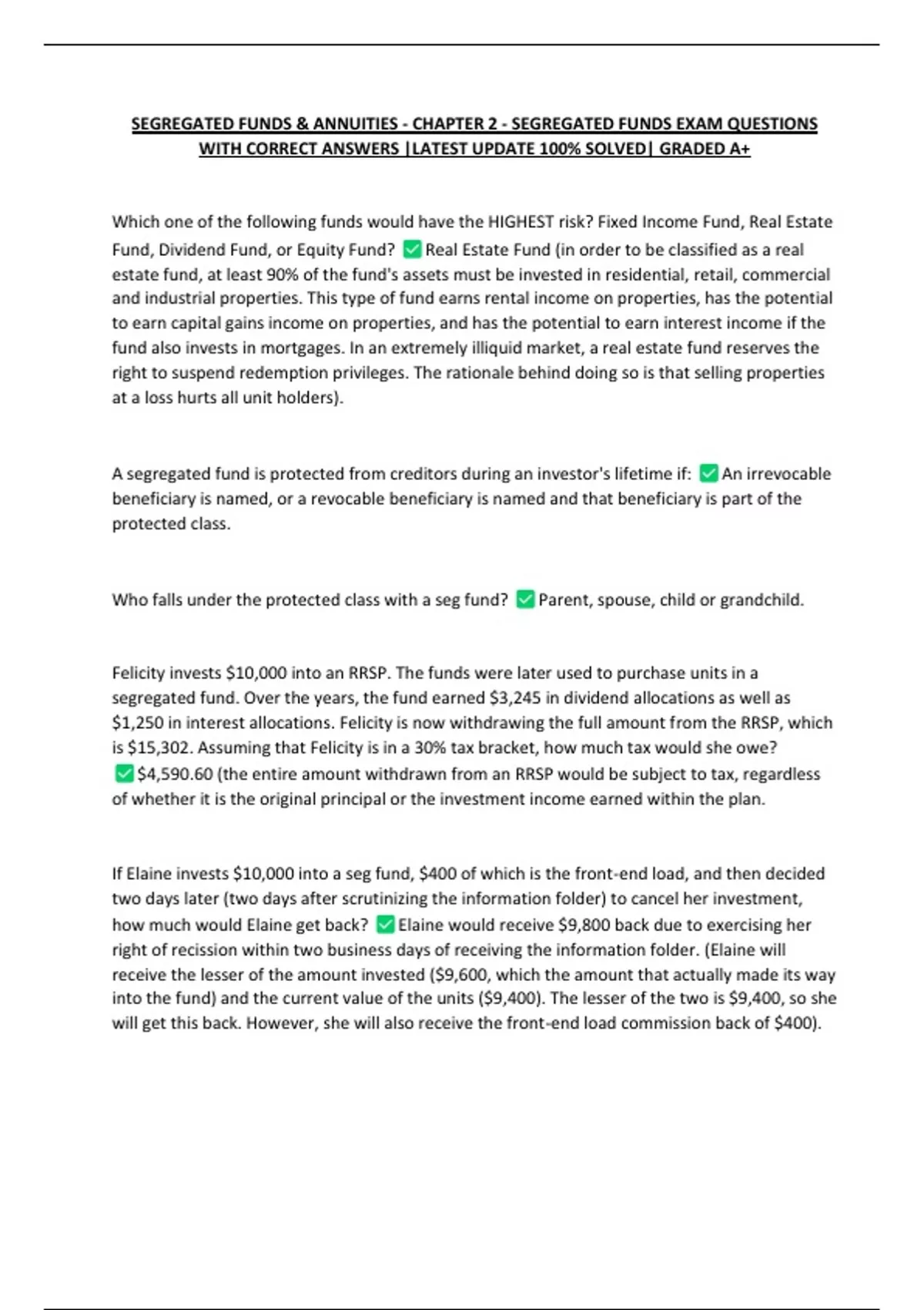 If Elaine invests $10,000 into a seg fund, $400 of which is the front-end load, and then decided