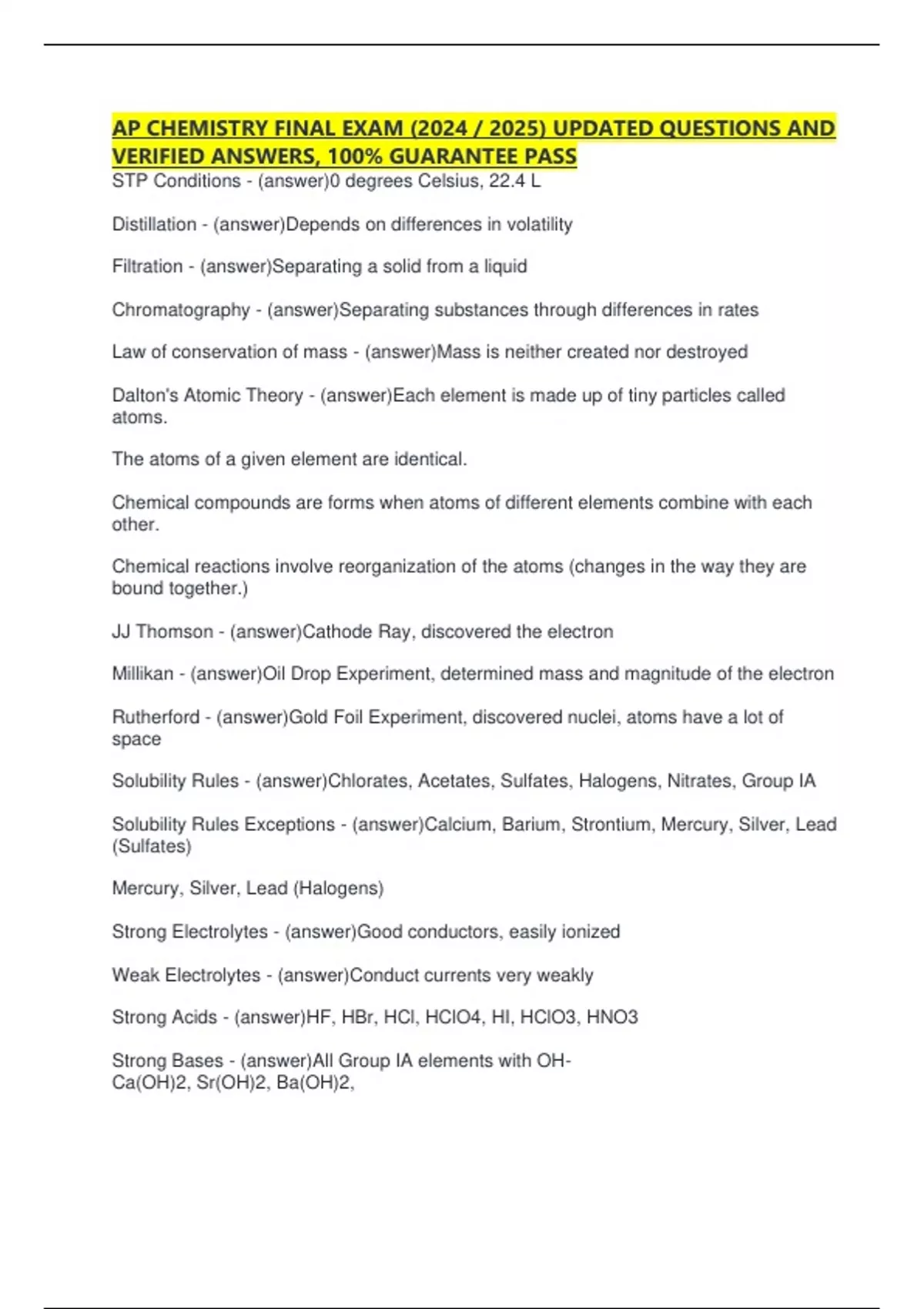 Solubility Rules - (answer)Chlorates, Acetates, Sulfates, Halogens, Nitrates, Group IA