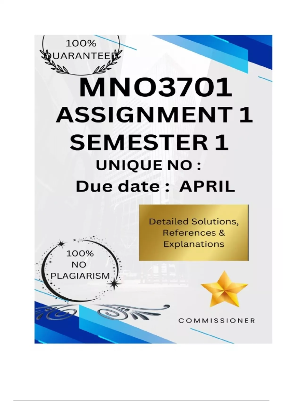 MNO3701 Assignment 1 (COMPLETE ANSWERS) Semester 1 2025 - DUE April 2025; 100% TRUSTED Complete, trusted solutions and explanations.