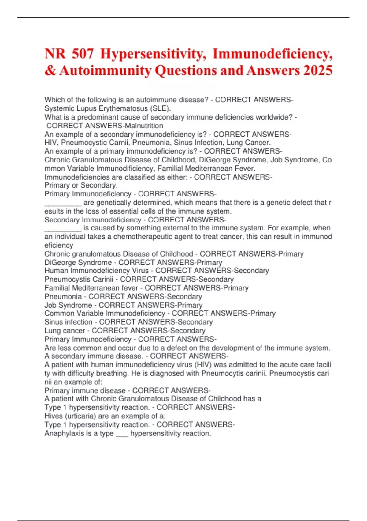 PrimaryAImmunodeficiencyA-ACORRECTAANSWERS-