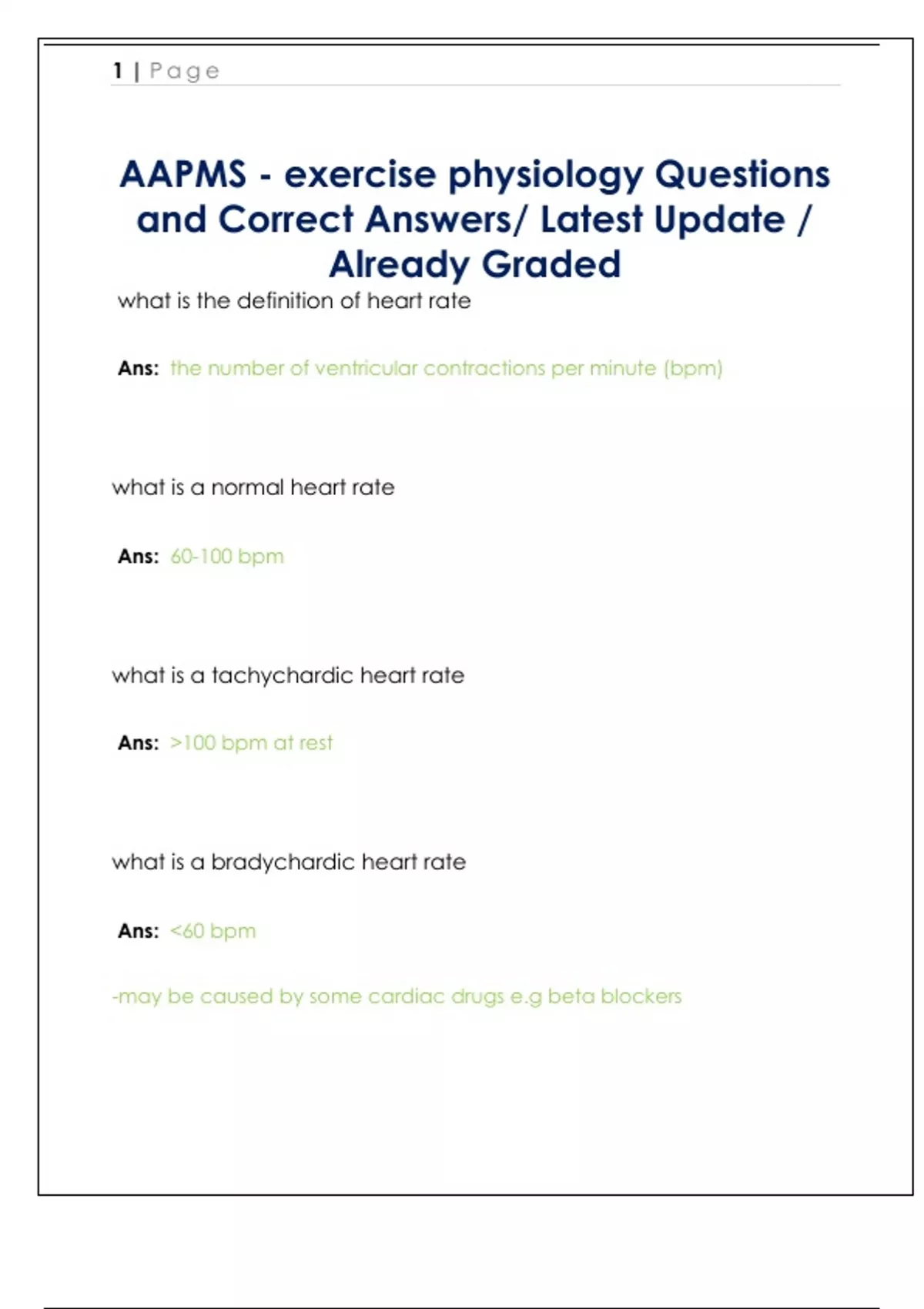 AAPMS - exercise physiology Questions and Correct Answers/ Latest Update / Already Graded