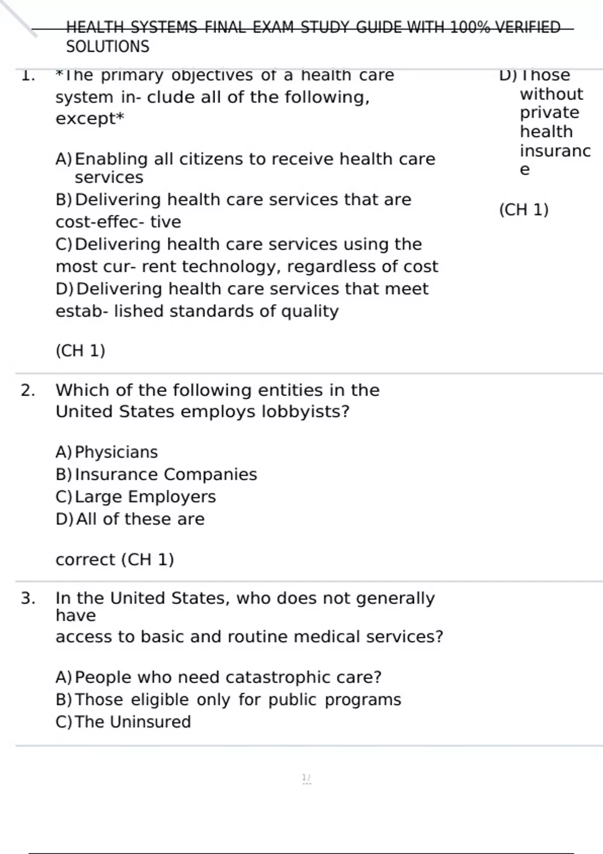 , HEALTH SYSTEMS FINAL EXAM STUDY GUIDE WITH 100% VERIFIED SOLU