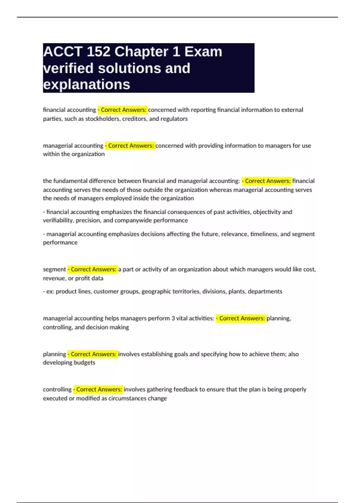 managerial accounting - Correct Answers: concerned with providing information to managers for use