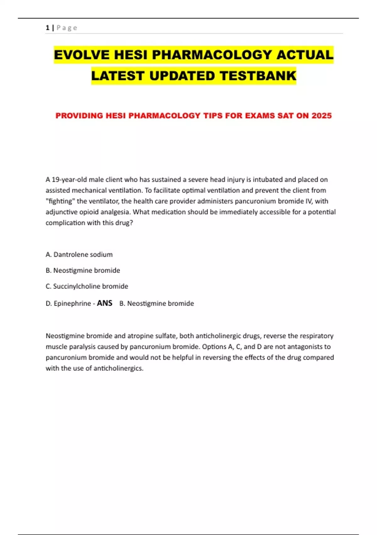 EVOLVE HESI PHARMACOLOGY ACTUAL