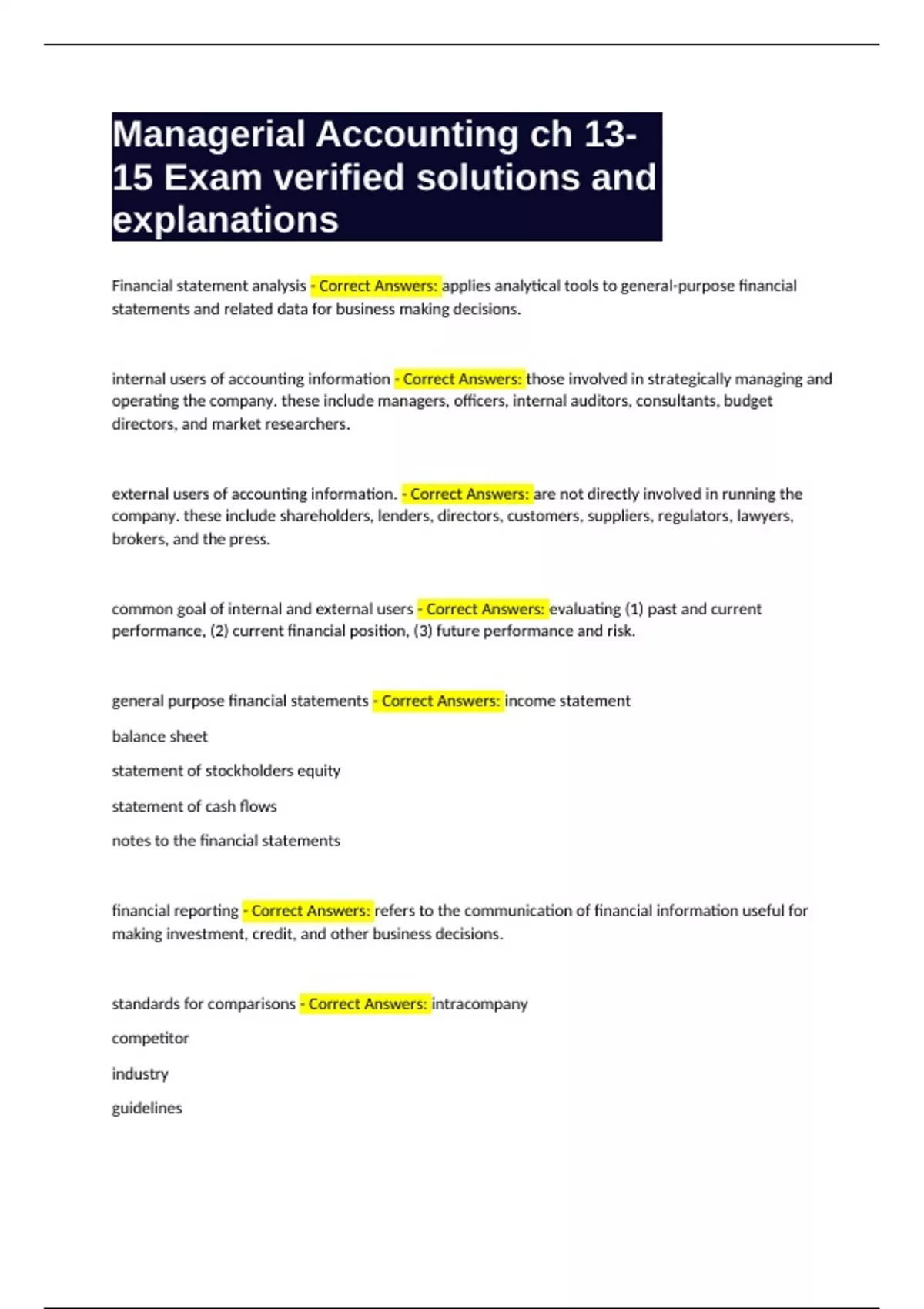 standards for comparisons - Correct Answers: intracompany