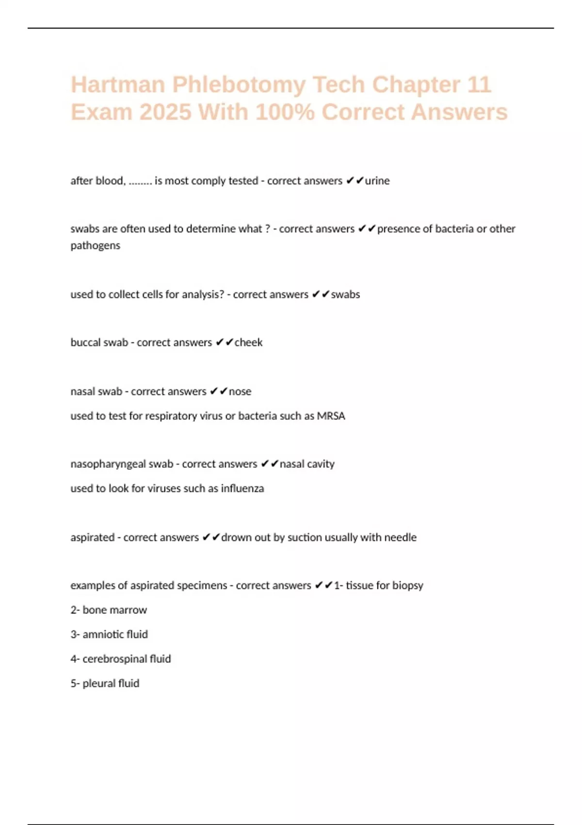 examples of aspirated specimens - correct answers ✔✔1- tissue for biopsy