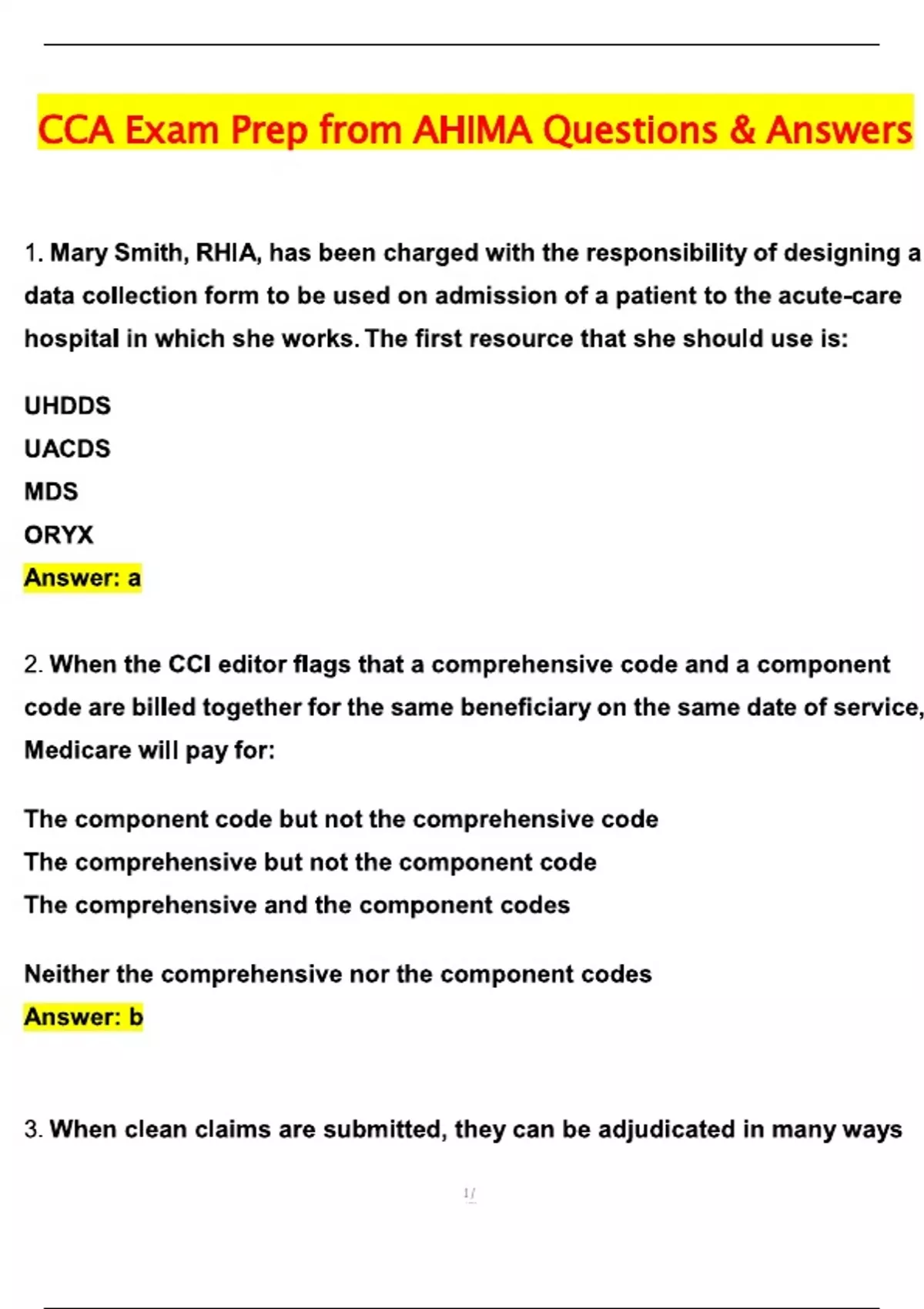2025 AHIMA CCA Exam Prep Questions and Answers Latest (2025 / 2026) (Verified Answers)