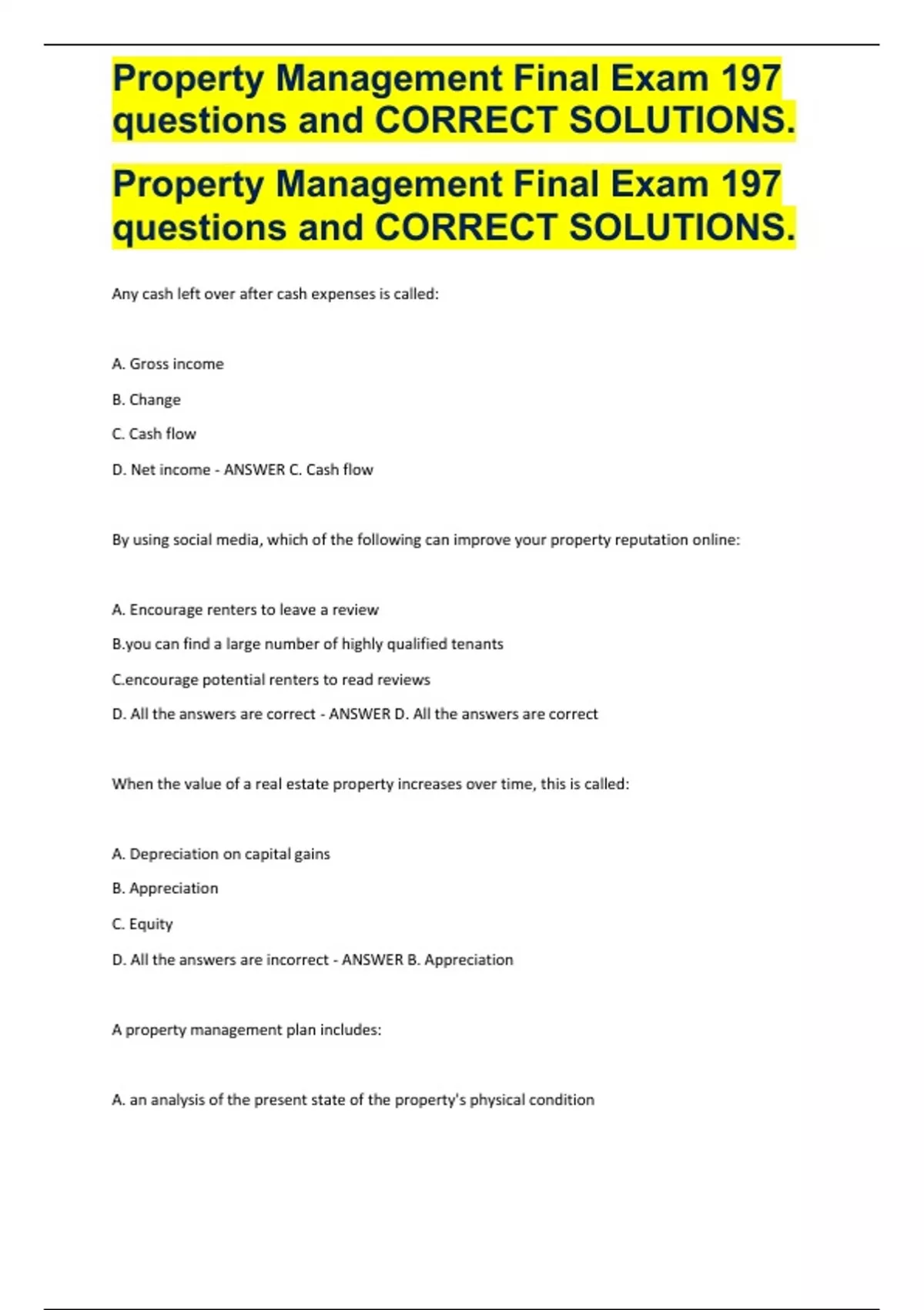 Property Management Final Exam 197 questions and CORRECT SOLUTIONS. Property Management Final Exam 197 questions and CORRECT SOLUTIONS. Property Management Final Exam 197 questions and CORRECT SOLUTIONS.