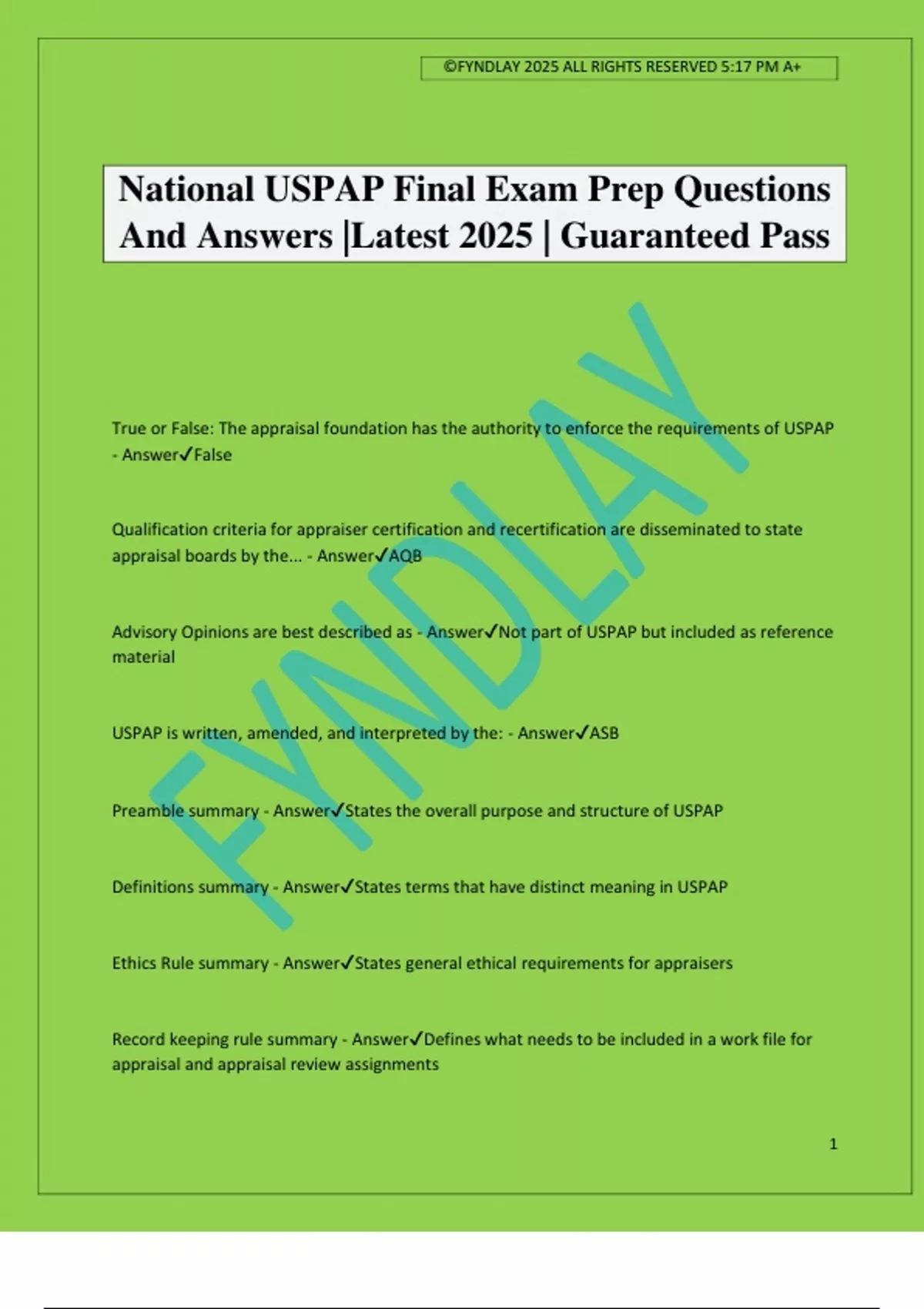 Definitions summary - Answer✔States terms that have distinct meaning in USPAP